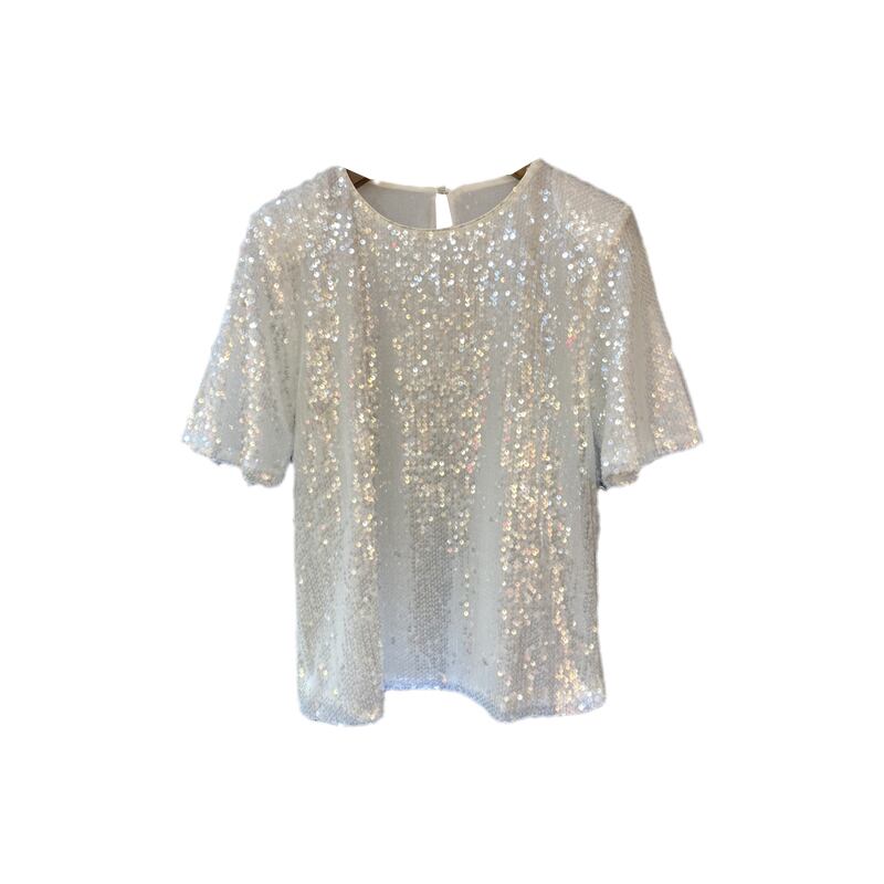 Nomikuma スパンコール Blignbling Tシャツ夏 Tシャツトップス因果半袖グラフィック Tシャツ ショート ハーフスリーブ サマー 夏物