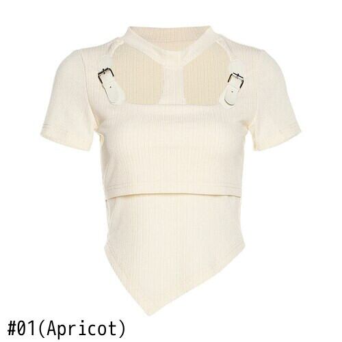 Nomikuma セクシーガール半袖 Tシャツ不規則夏ショートトップ中空アウトスリムプルオーバー Tシャツ ハーフスリーブ サマー 夏物