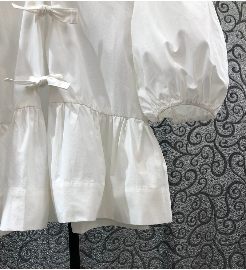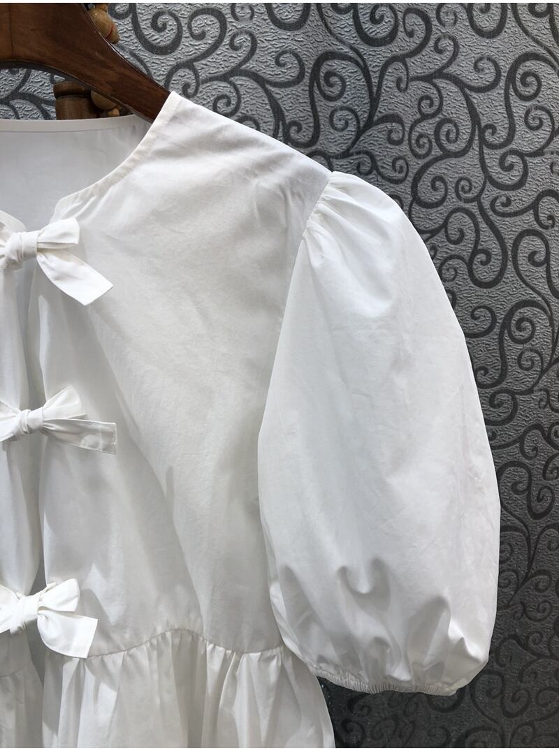Nomikuma シック蝶ネクタイパフ Slevee ショートブラウス夏人形シャツ甘い O ネック甘いデ リボン 大人ガーリー スウィート キュート カジュアル サマー 夏物 Oネック