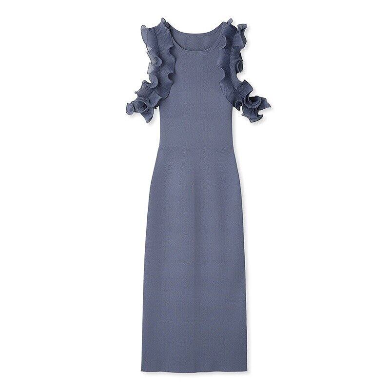 Nomikuma スタイルニットスリムストレッチドレスシック花びらスリーブ O ネックセーター Vestidos サマードレス 夏物 Oネック