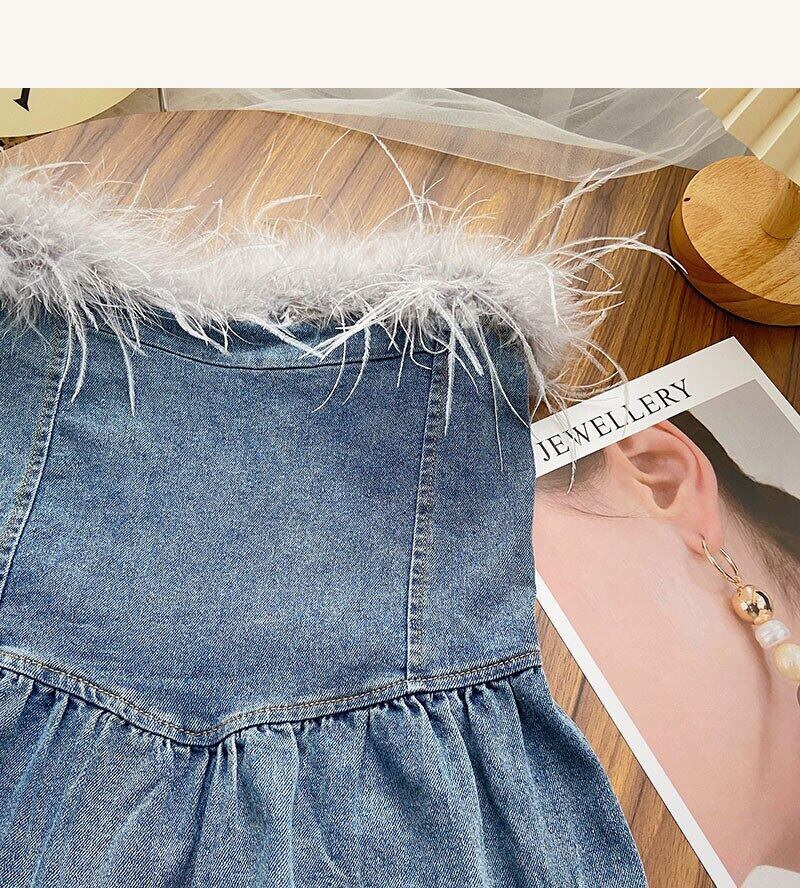 Nomikuma ファーパッチワークオフショルダー Demin タンクトップ夏スリムウエストフリルセクシージーンズベストトップス Ropa デ サマー 夏物