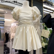 Nomikuma セクシースクエア Colalr パフスリーブドレス夏スリムウエスト A ラインドレス因果 A ライン Vestidos サマー 夏物 Aライン スクウェア