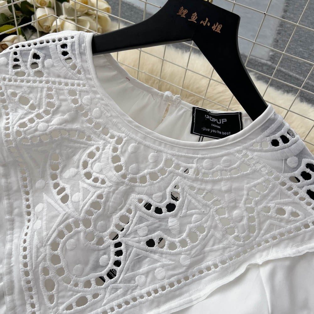 Nomikuma セクシープレッピースタイルドレス春夏中空アウトレースパッチワーク O ネック Vestidos ランタンスリーブドレス スプリング 春物 サマー 夏物 Oネック