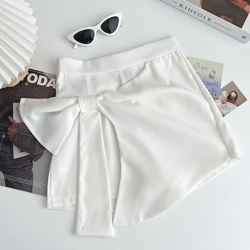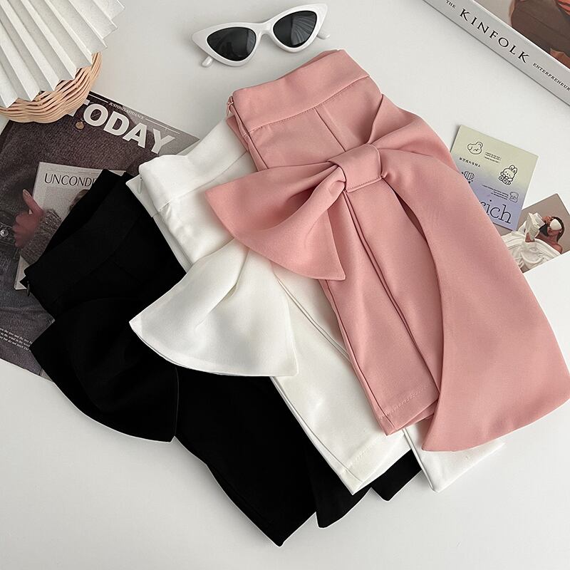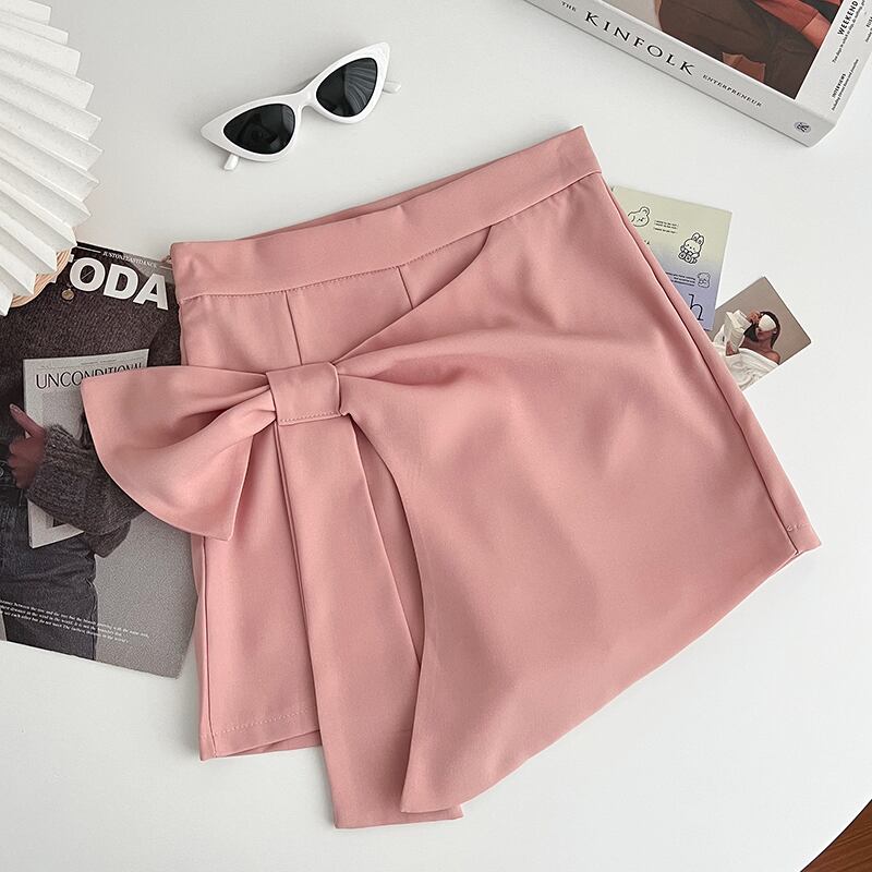 ノミクマ甘い蝶ネクタイウエストスリムショーツスカートワイドレッグパンツ夏ファルダデボトムス リボン 大人ガーリー スウィート キュート カジュアル サマー 夏物 ブルマー ワイドパンツ