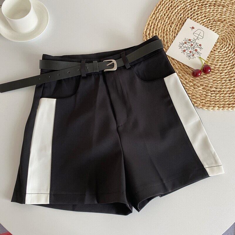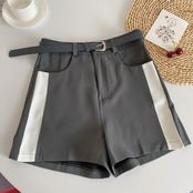 Nomikuma ウエストスーツ ショーツ ベルト付き レディース 夏 ボトムス コントラストカラー ワイドレッグ ショートパンツ サマー 夏物 ハーネス ブルマー ワイドパンツ