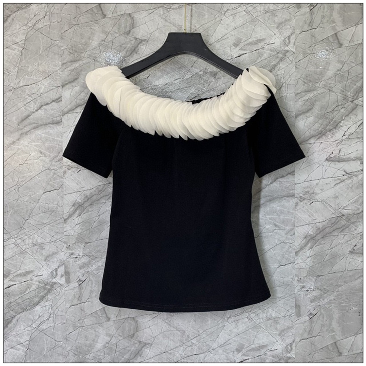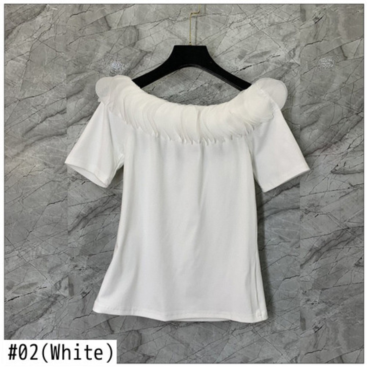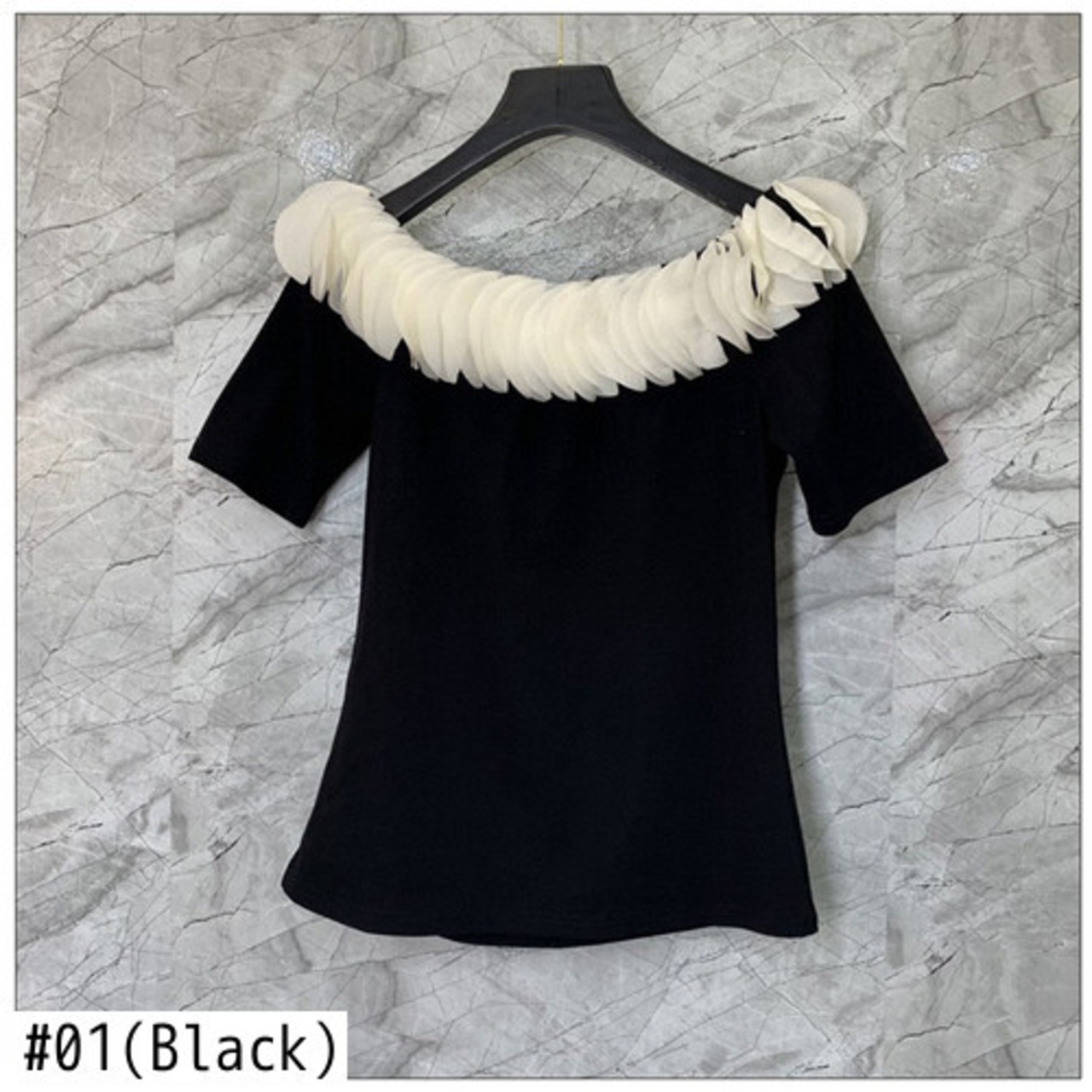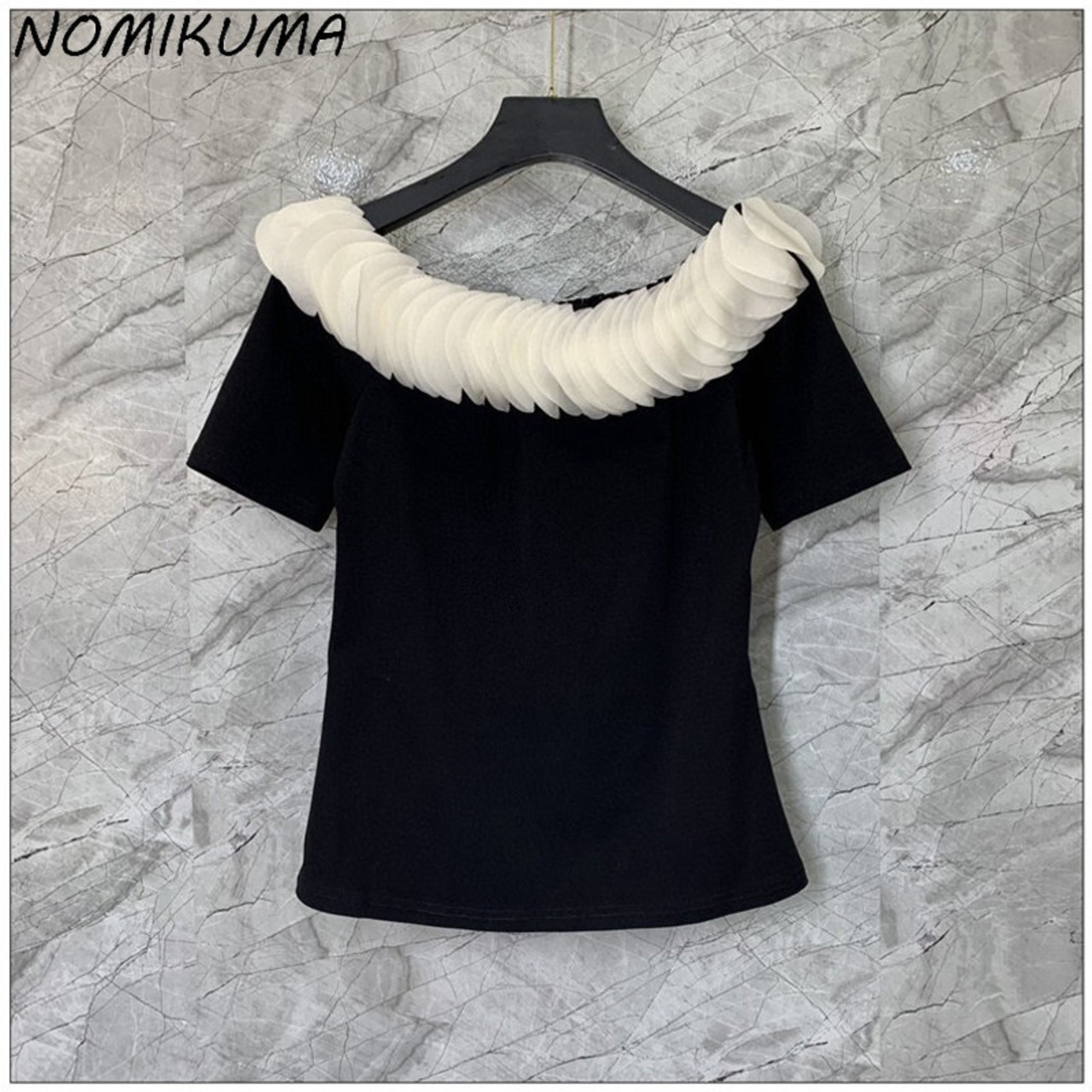 Nomikuma オフショルダーヒットカラー花びらパッチワーク Tシャツ半袖夏 Tシャツトップスグラフィック Tシャツ ショート ハーフスリーブ サマー 夏物