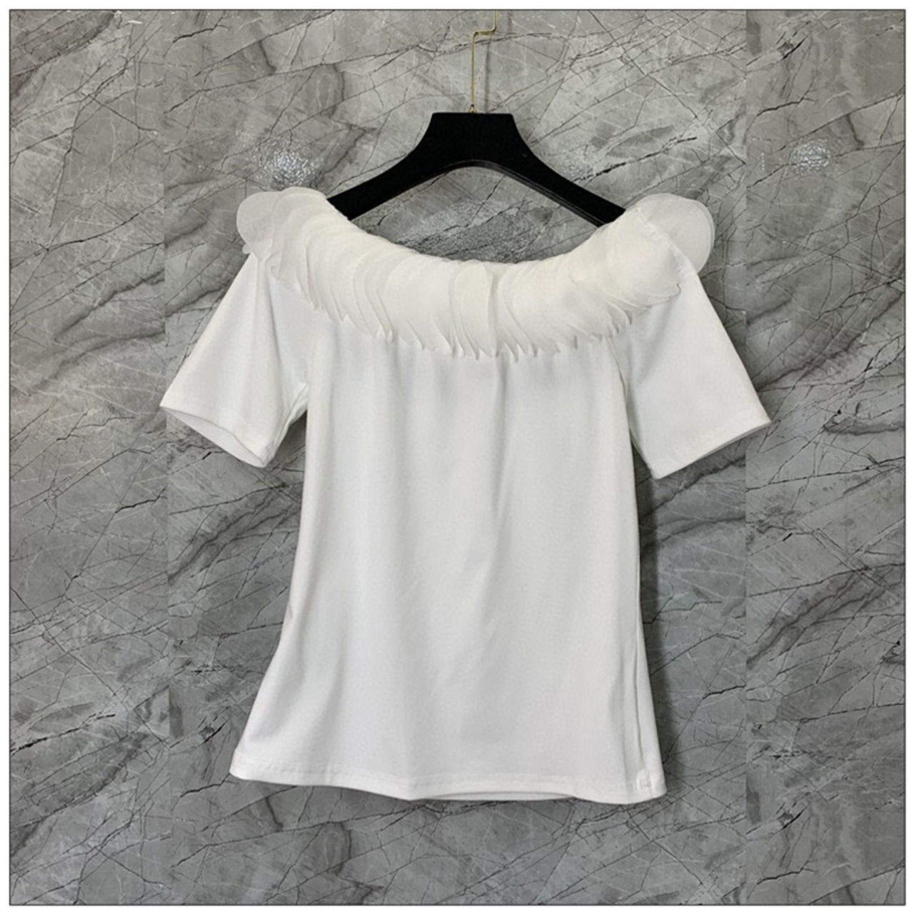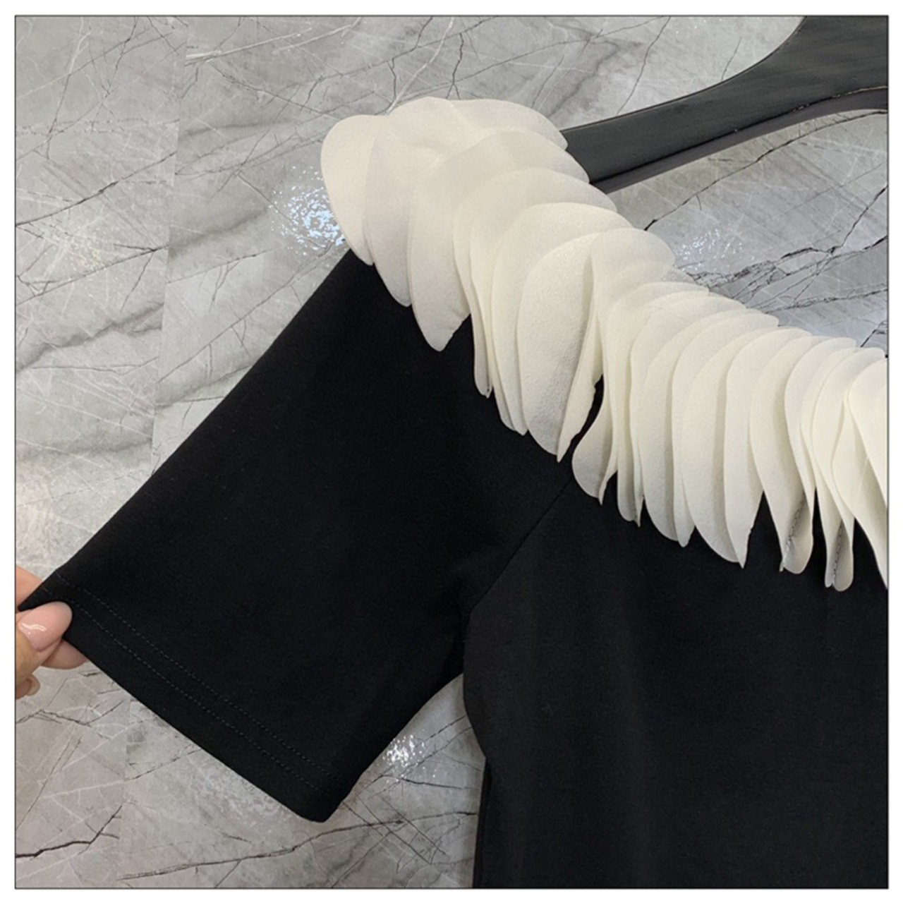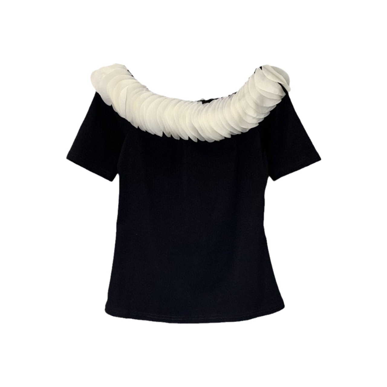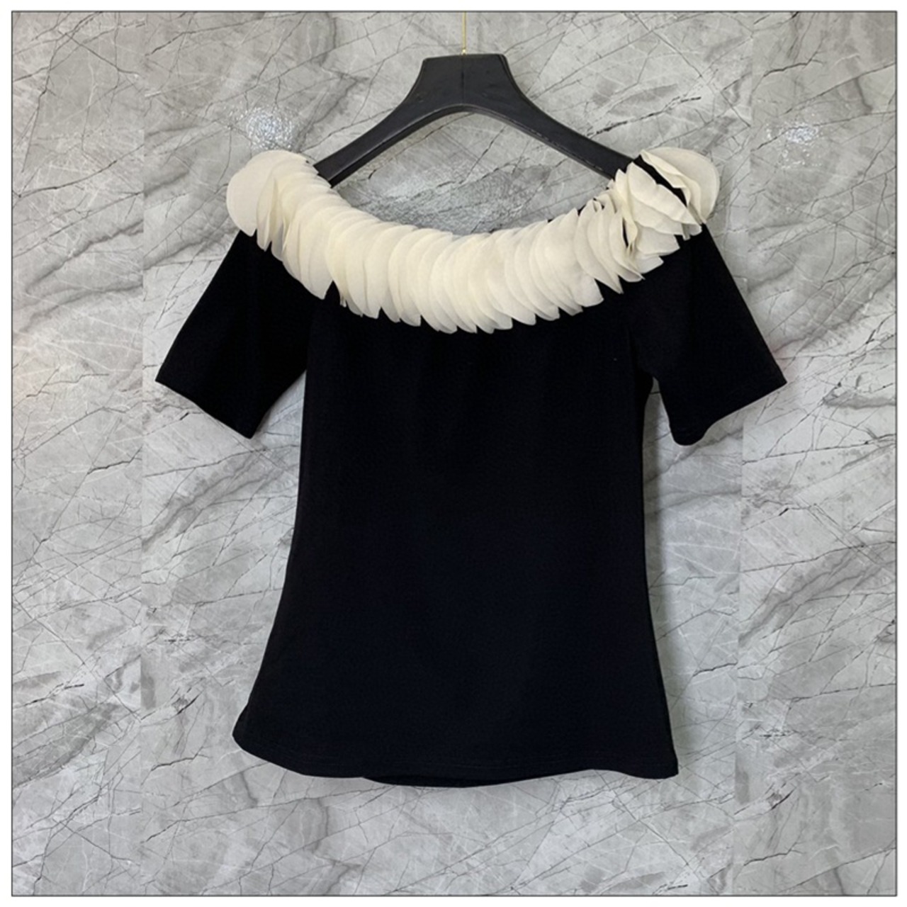 Nomikuma オフショルダーヒットカラー花びらパッチワーク Tシャツ半袖夏 Tシャツトップスグラフィック Tシャツ ショート ハーフスリーブ サマー 夏物
