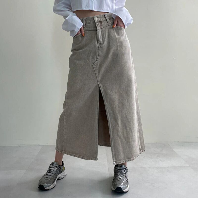 Nomikuma ウエストデミンスカートシック夏ボトムス因果スプリット A ラインジーンズスカート段 Faldas デ サマー 夏物 Aライン