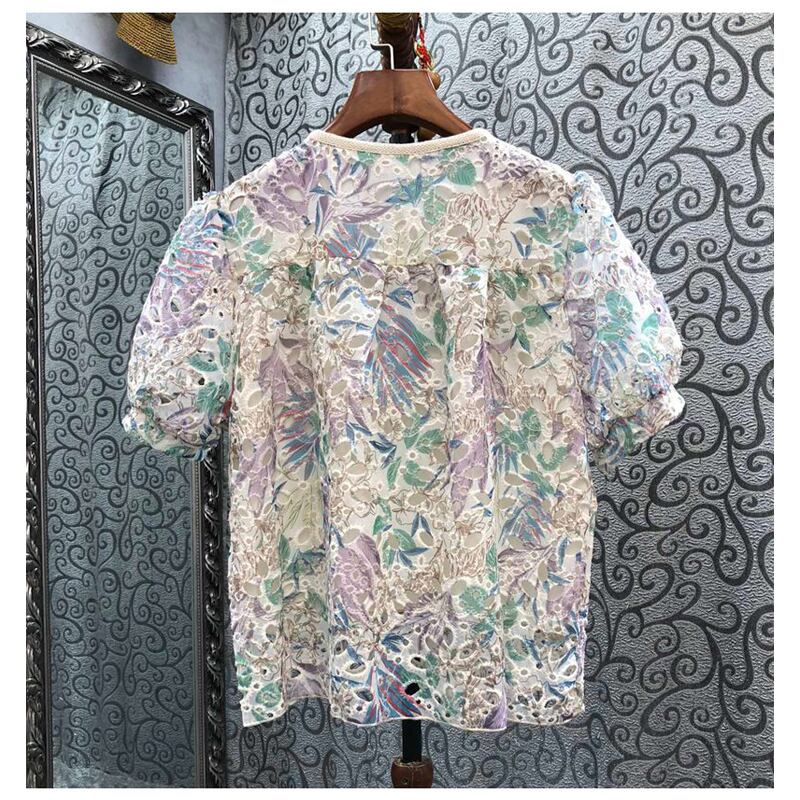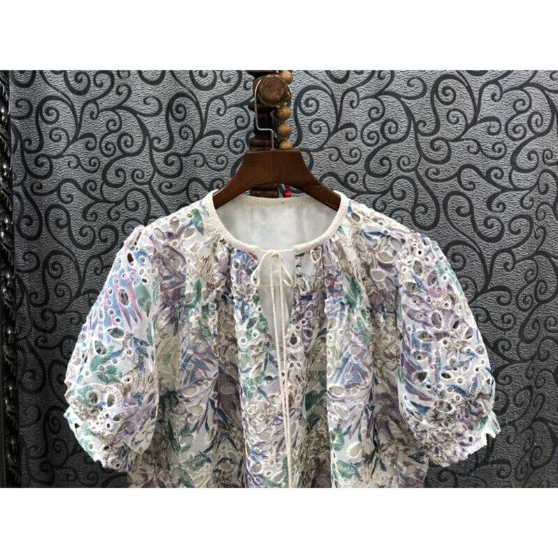 Nomikuma シック 刺繍 中空アウト レースアップ レディース トップス 夏 ブラウス シャツ パフスリーブ スウィート 大人ガーリー キュート カジュアル サマー 夏物