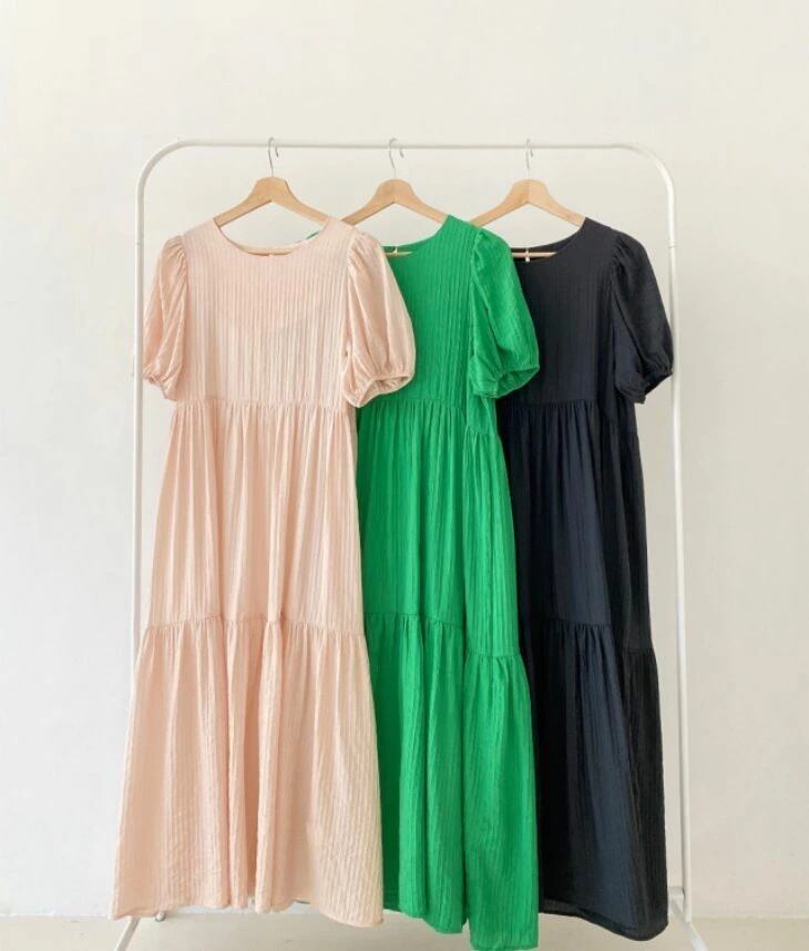 Nomikuma シックサマードレスパフスリーブ O ネックドレス甘い因果 A ライン Vestidos デ 大人ガーリー スウィート キュート カジュアル 夏物 Oネック Aライン