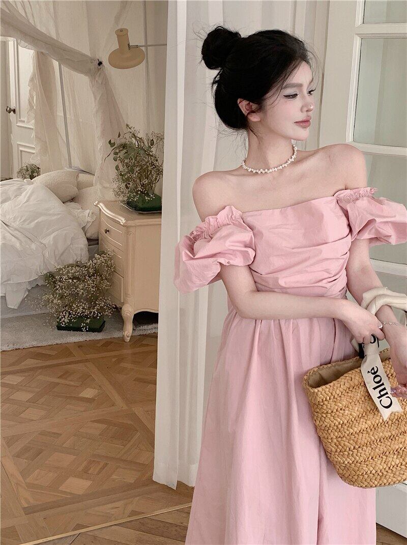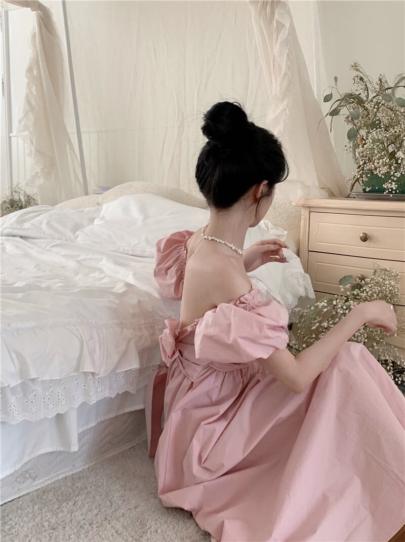 Nomikuma ウエスト A ラインドレスセクシーオフショルダーストラップレス Vestidos 弓包帯背中開いたドレス リボン Aライン