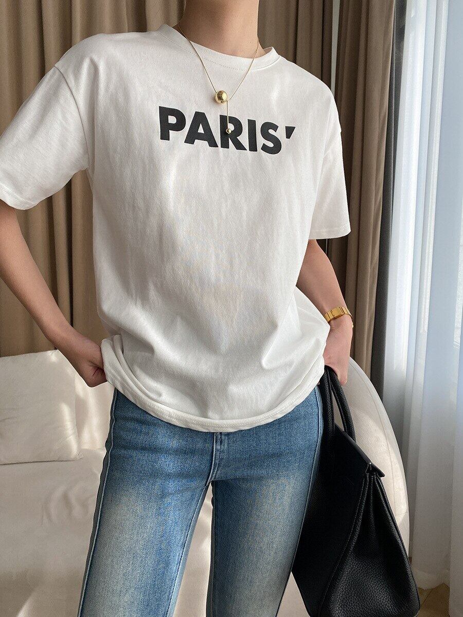 Nomikuma 文字半袖 O ネックシャツ夏因果 Tシャツトップスシックグラフィック Tシャツ ショート ハーフスリーブ サマー 夏物 Oネック