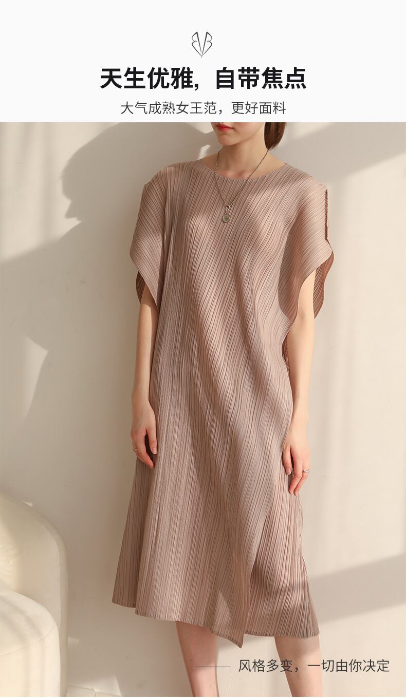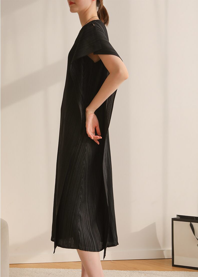 Nomikuma 因果 O ネック半袖ひだドレス夏ストレート Vestidos ドレス ショート ハーフスリーブ サマー 夏物 Oネック