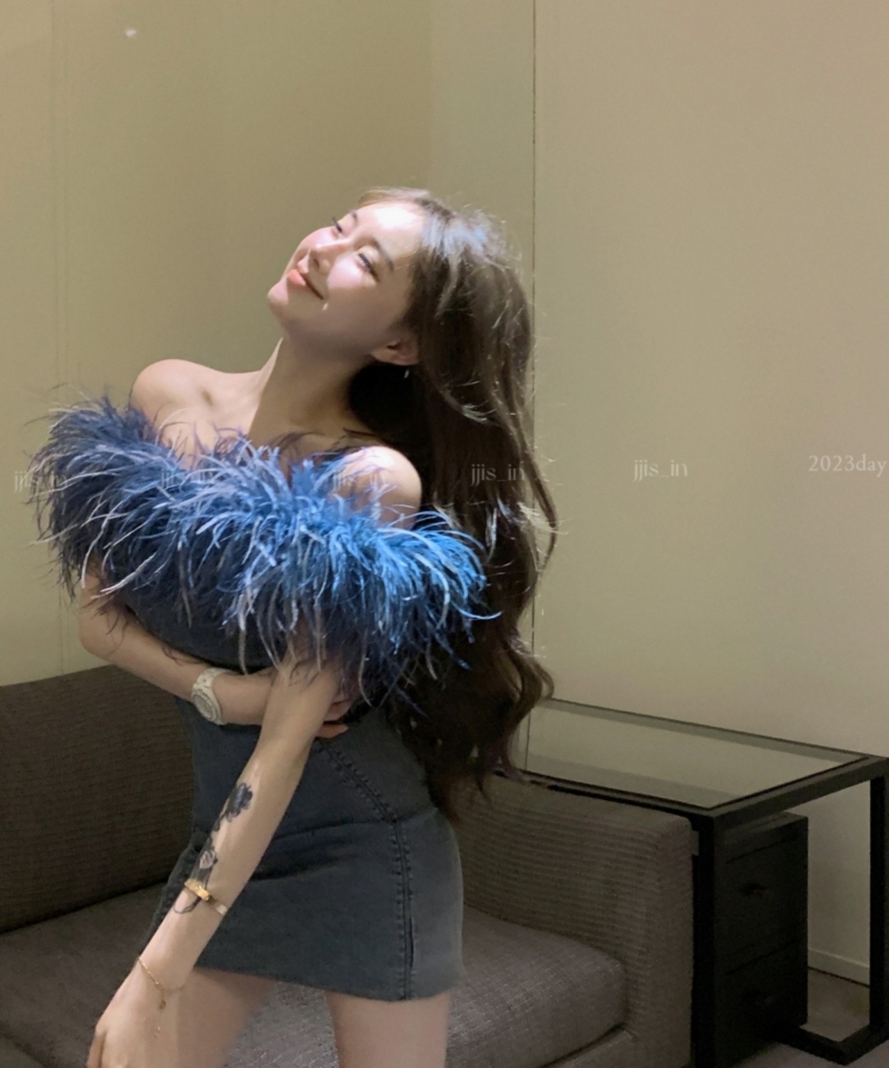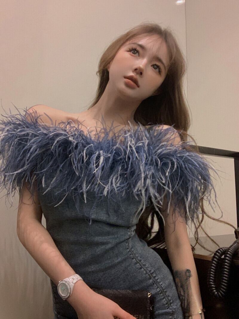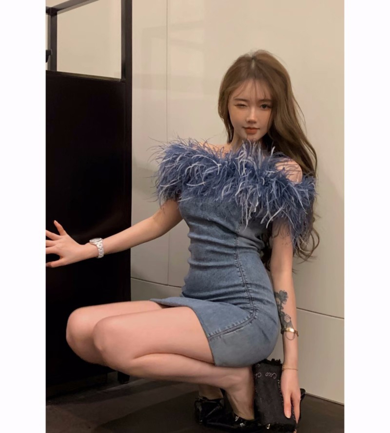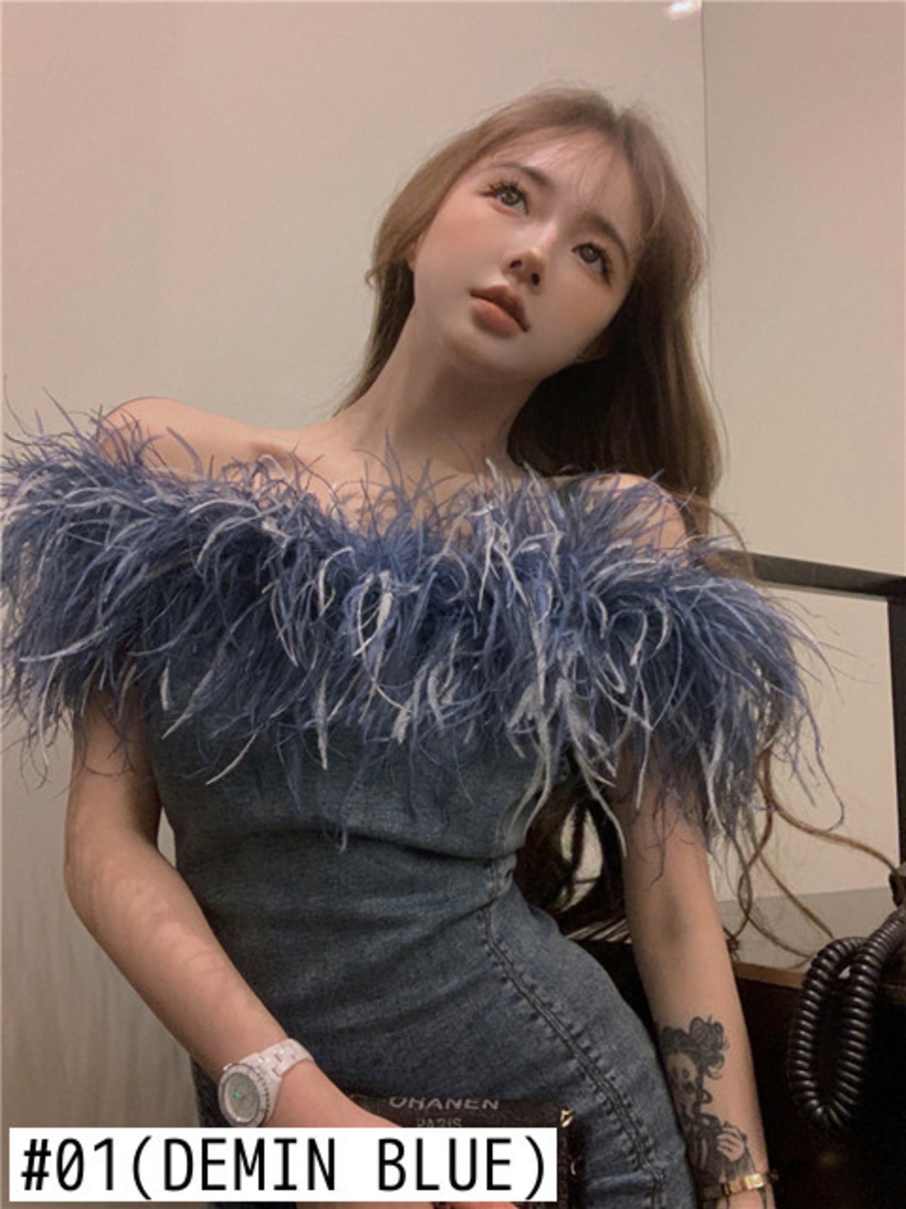 Nomikuma 毛皮 Tel パッチワークオフショルダーストラップレスジーンズドレス夏スリムジーンズミニ Vestidos サマー 夏物