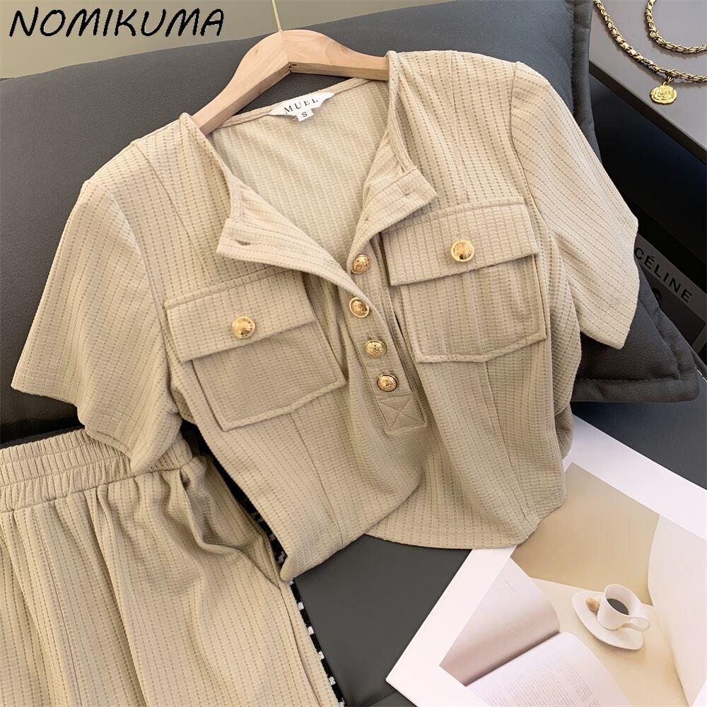 Nomikuma ツーピース服夏半袖 T シャツ + ウエストワイド Eleg スプリットロングパンツセット ショート ハーフスリーブ サマー 夏物 Tシャツ