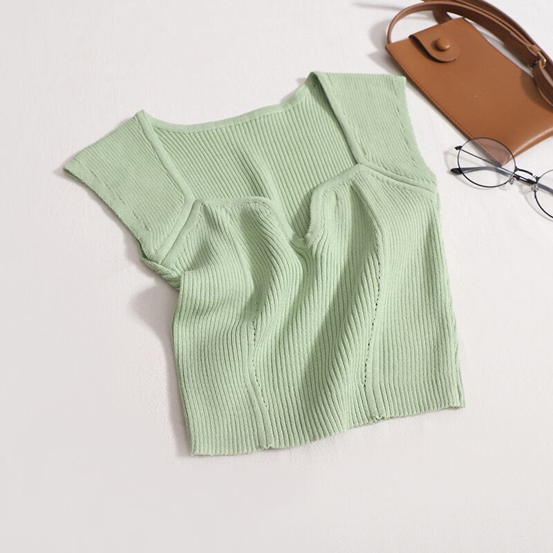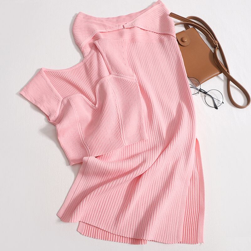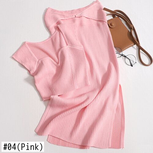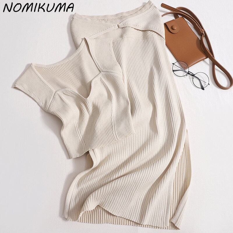 Nomikuma セクシーニット 2 点セット夏スリムスクエアカラーショートベスト + Wiast スプリットセータースカート サマー 夏物 スクウェア