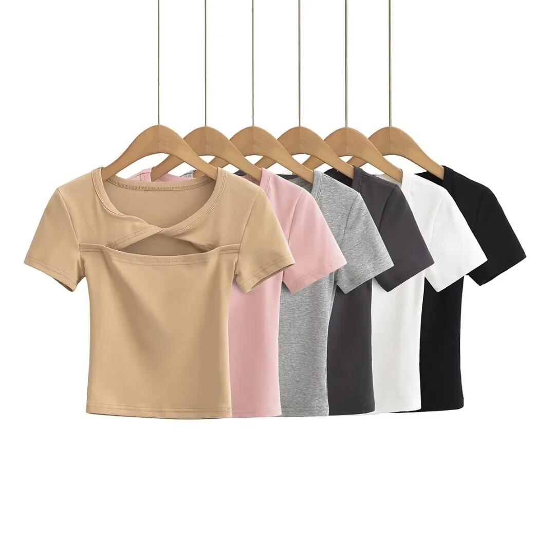 Nomikuma 甘いセクシーツイスト中空セクシー半袖トップ夏スリムフィットクロップ Tシャツグラフィック Tシャツ ショート ハーフスリーブ 大人ガーリー スウィート キュート カジュアル サマー 夏物