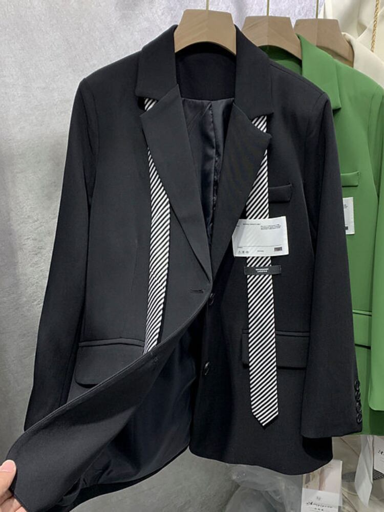 Nomikuma 因果ストライプネクタイスーツジャケット春ブレザー長袖ターンダウン襟シングルブレストブレザーコート ロング スプリング 春物