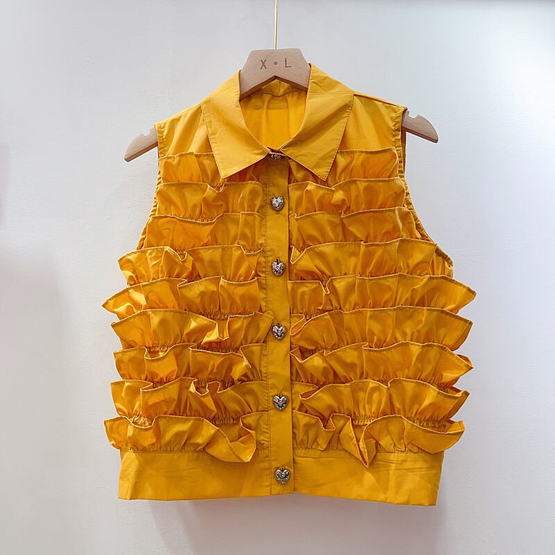 Nomikuma ノースリーブ ターンダウン襟ブラウス シックレイヤード フリル パッチワーク トップス夏シャツ サマー 夏物
