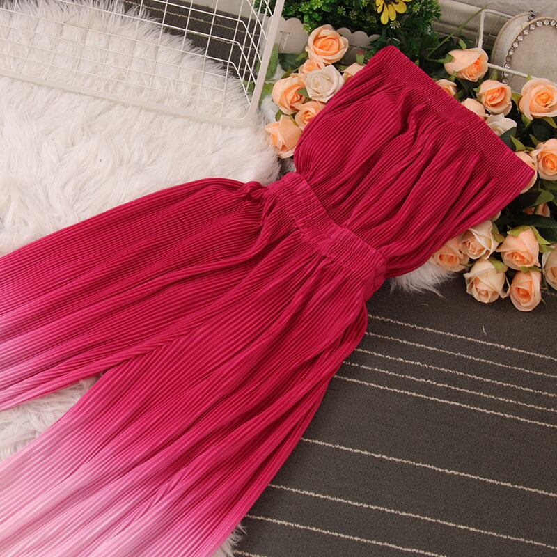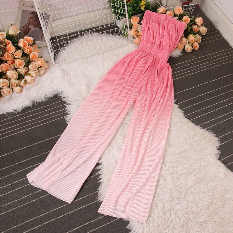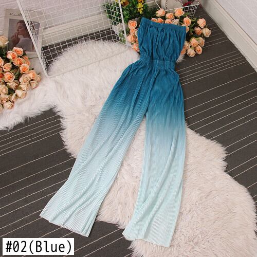 Nomikuma セクシーストラップレスオフショルダースリムウエストジャンプスーツ Sumemr グラデーションカラーワイドレッグロングボディスーツ ワイドパンツ
