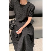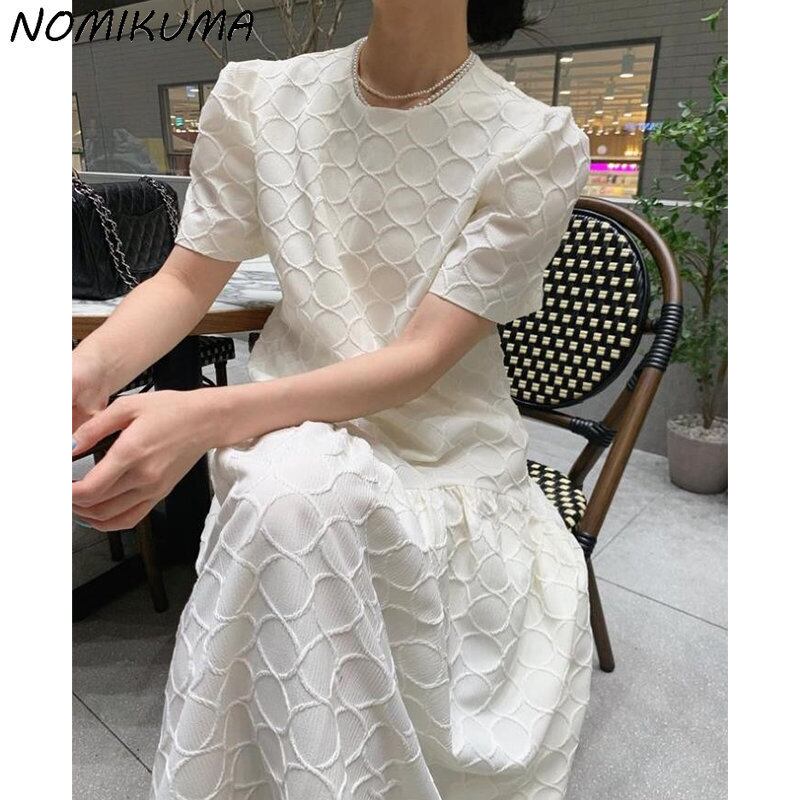 Nomikuma シック夏 O ネックドレス甘いパフスリーブウエスト因果 A ライン Vestidos ドレス 大人ガーリー スウィート キュート カジュアル サマー 夏物 Oネック Aライン