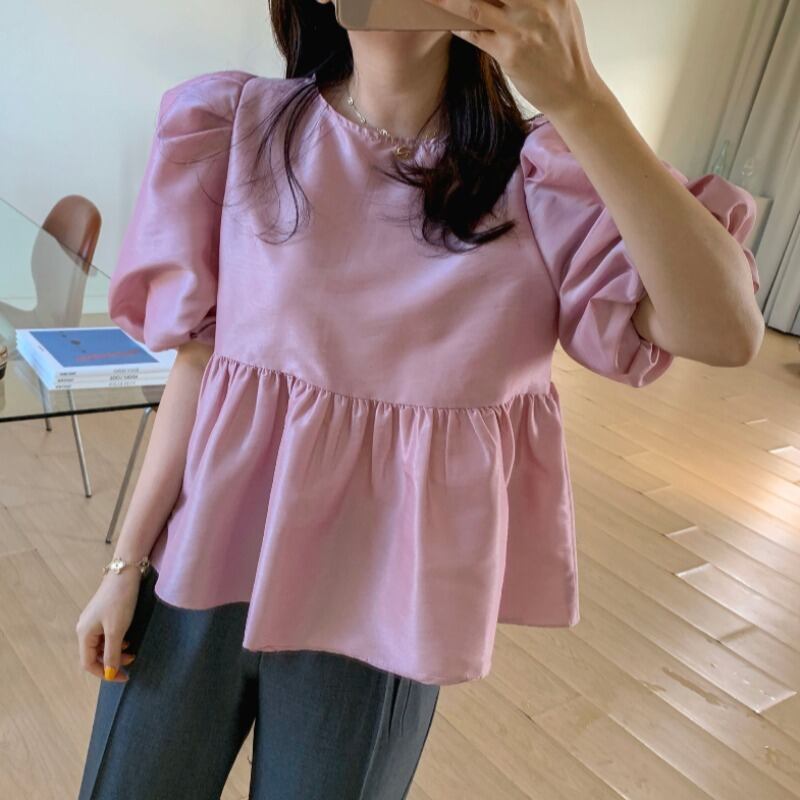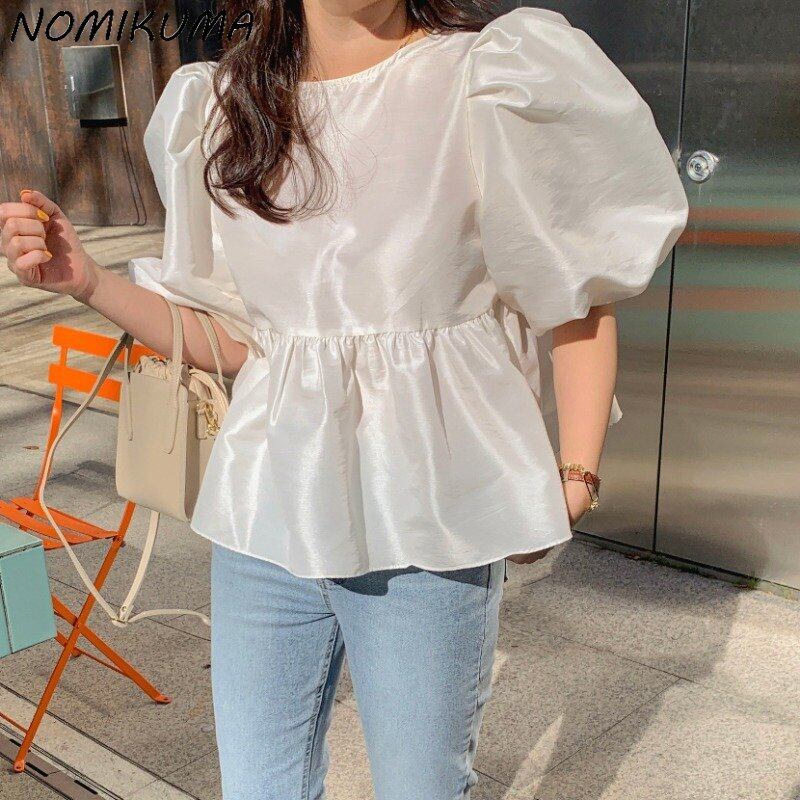 Nomikuma シックパフスリーブドールシャツ甘いフリルブラウストップス因果夏デ 大人ガーリー スウィート キュート カジュアル サマー 夏物
