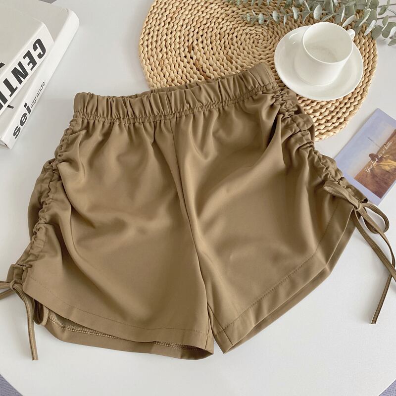 Nomikuma 巾着レースアップワイドレッグショート弾性ウエスト夏ショーツ Pantalones デ エラスティック 伸縮 サマー 夏物 ブルマー ワイドパンツ