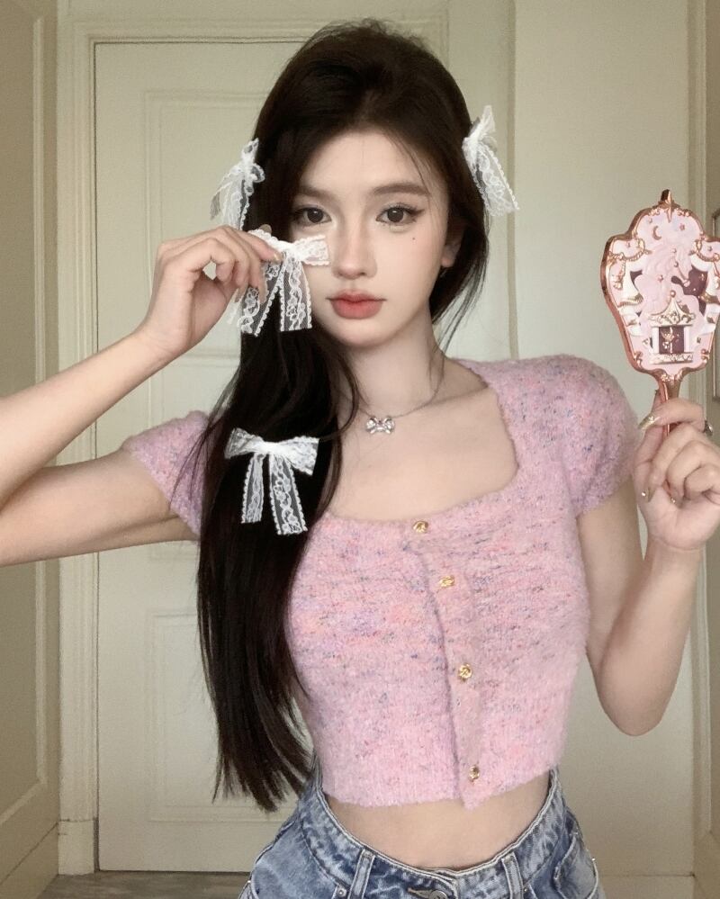 Nomikuma セクシークロップニットカーディガン夏正方形 Colalr ウエストスリム半袖ニットセーターコート ショート ハーフスリーブ サマー 夏物 スクウェア
