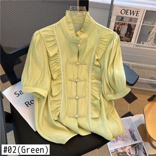 Nomikuma シングルブレストスタンドネックブラウストップスシックフリルパッチワークシャツ夏 サマー 夏物