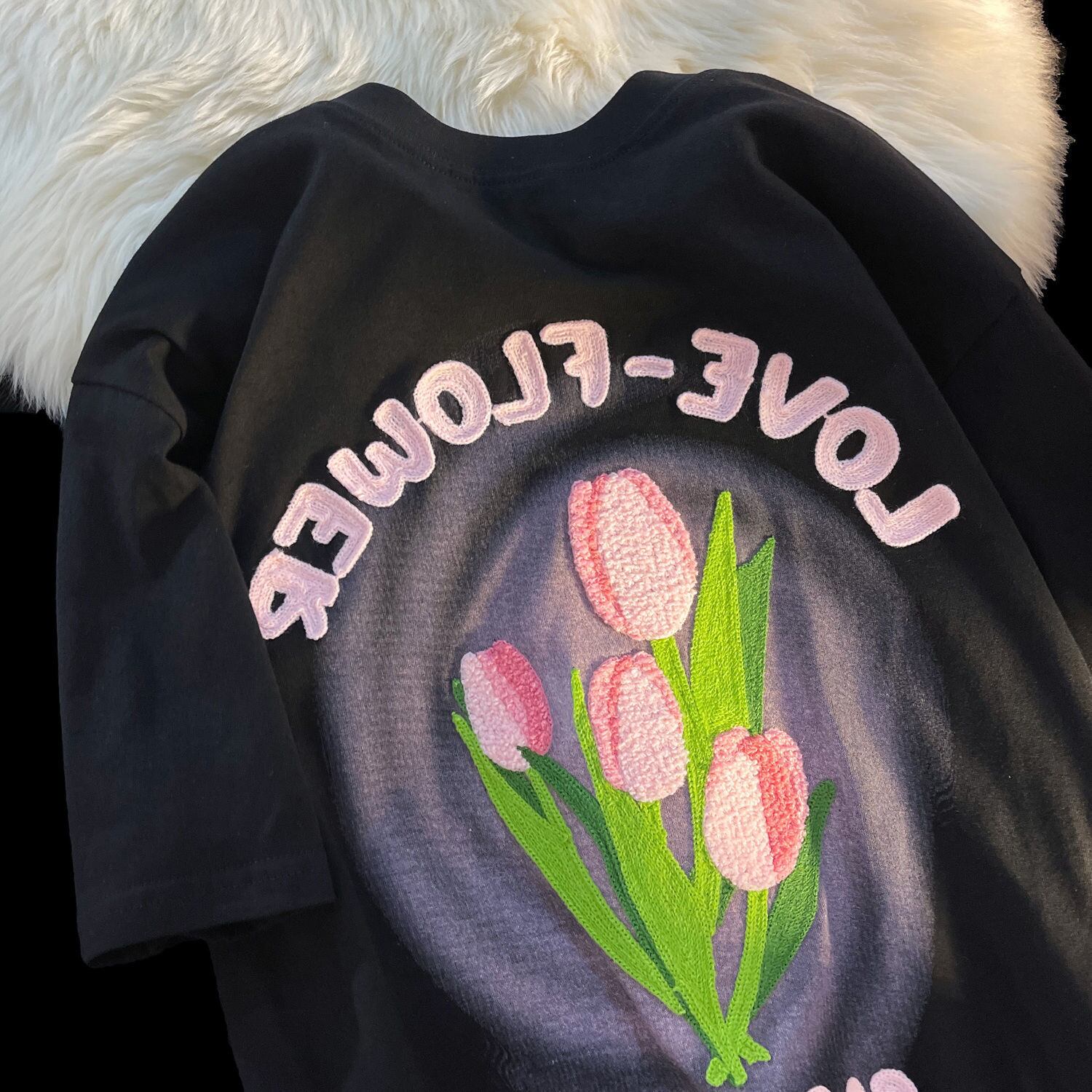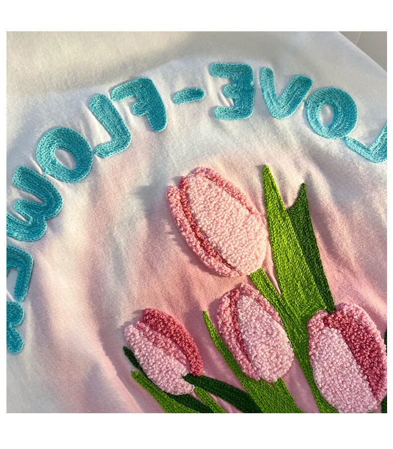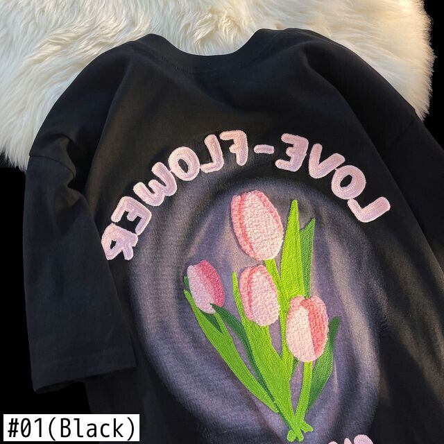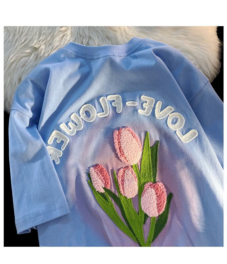 Nomikuma 花手紙因果シャツ夏半袖 Tシャツトップス O ネックプルオーバー Y2k トップ ショート ハーフスリーブ サマー 夏物 Oネック フラワーデザイン