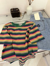 Nomikuma コントラストストライプ半袖 Tシャツ夏レトロ因果 O ネックトップスグラフィック T シャツ ショート ハーフスリーブ サマー 夏物 Oネック