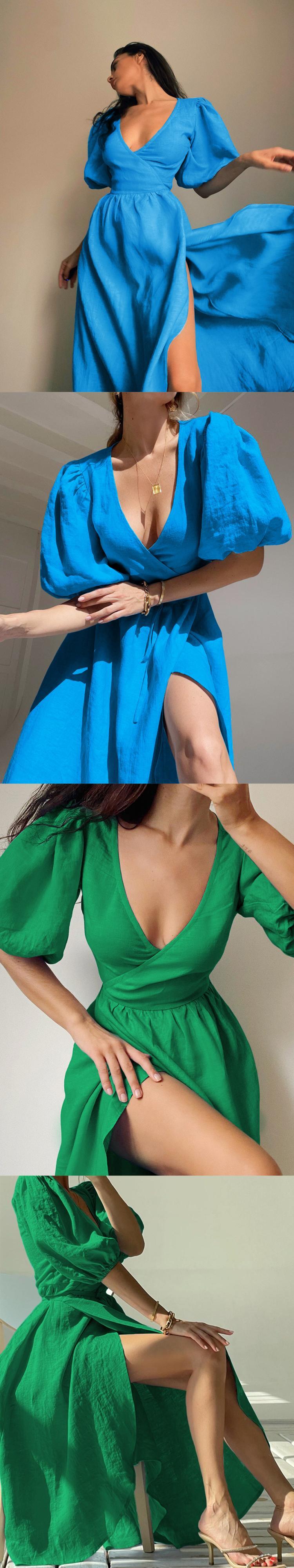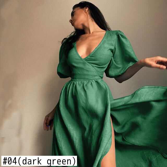 Nomikuma 夏レースアップドレススリムウエスト因果 A ラインスプリット Vestidos ソリッドドレス サマー 夏物 Aライン ソリッドカラー