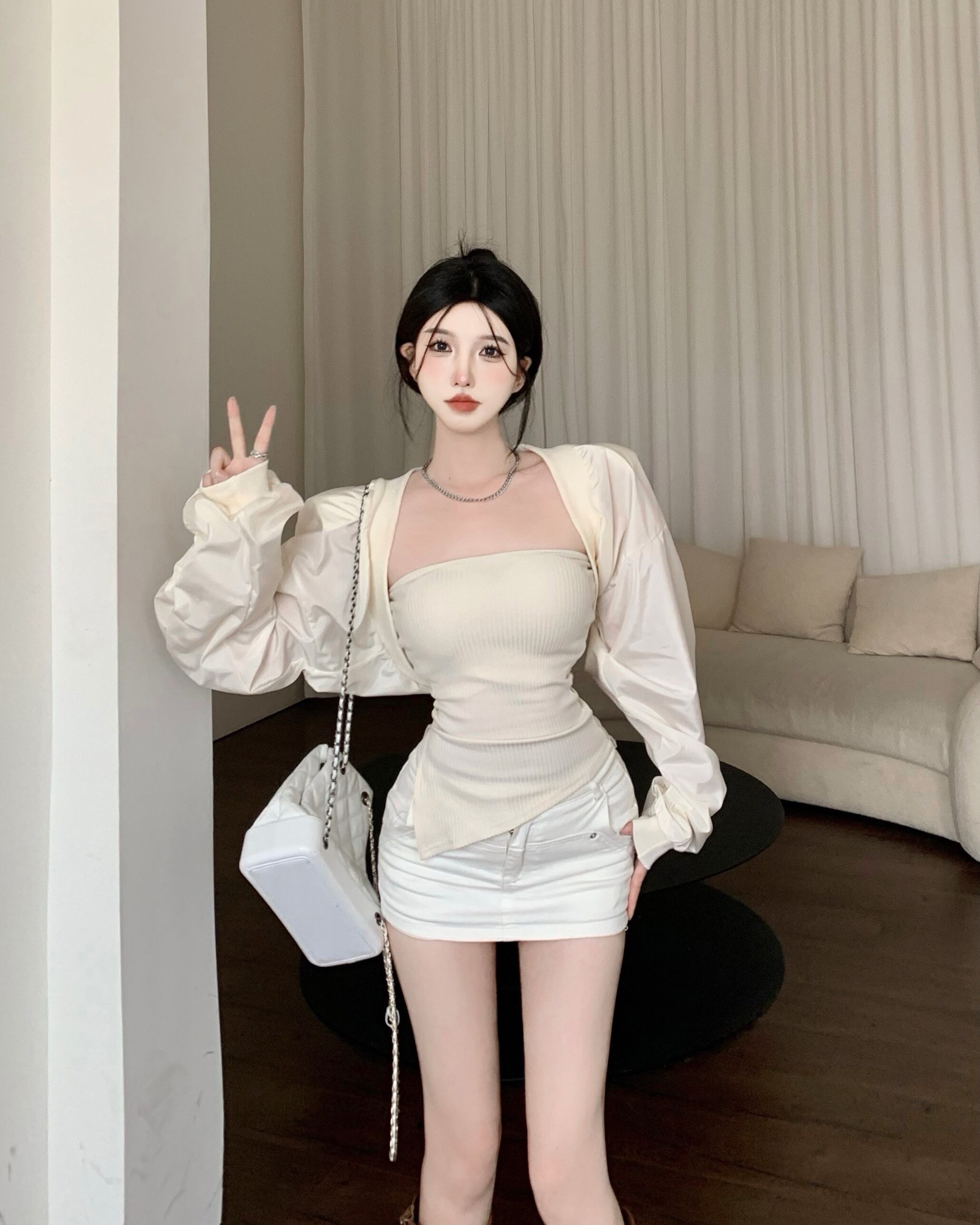 Nomikuma セクシースリム不規則タンクトップ + カーディガン薄いショートサンスクリーンコート 2 枚トップスセット夏 サマー 夏物