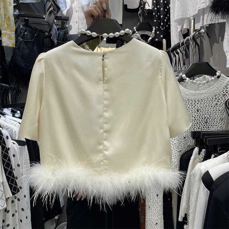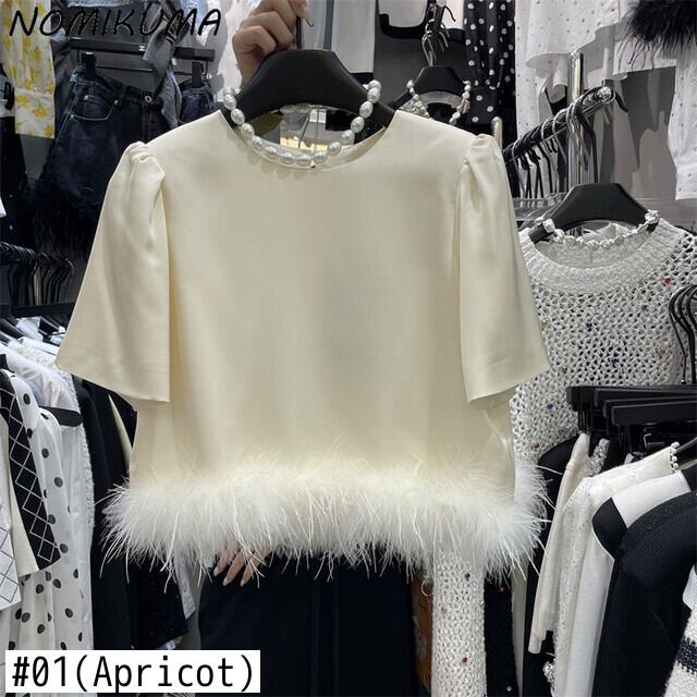 Nomikuma 夏羽パッチワークショートトップス因果 O ネックプルオーバー甘いグラフィック T シャツ 大人ガーリー スウィート キュート カジュアル サマー 夏物 Oネック Tシャツ