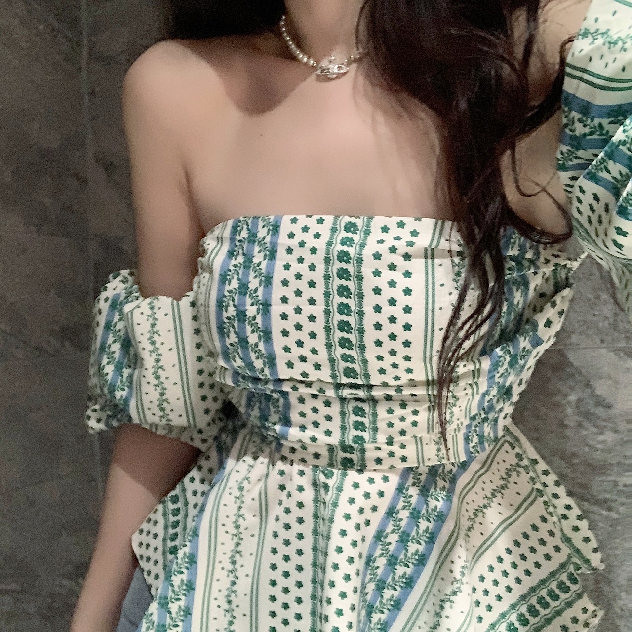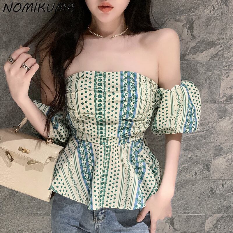 Nomikuma オフショルダープリントブラウスサマーシャツシックパフスリーブ Lsim ウエストフリル 夏物