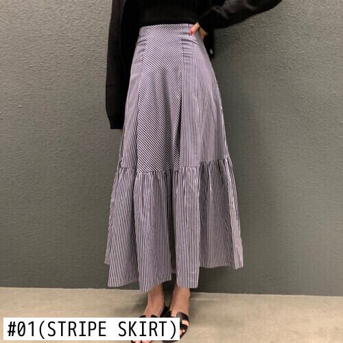 Nomikuma レディース 夏ストライプ A ライン スカート ミディアム丈 カジュアル スカート ウエスト ファルダ デ サマー 夏物 Aライン
