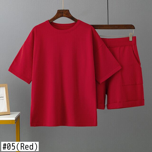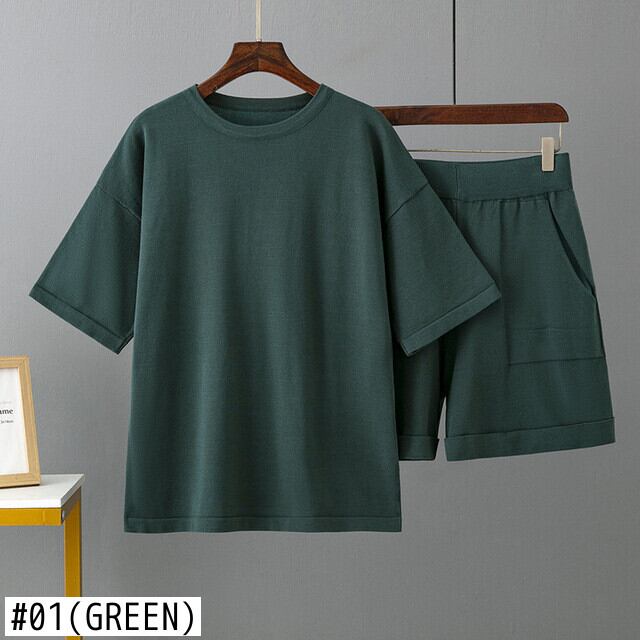 Nomikuma 因果ソリッドアイス 2 枚セット半袖 O ネック Tシャツ + ウエストショーツ夏衣装 ショート ハーフスリーブ サマー 夏物 ブルマー Oネック シルク ソリッドカラー