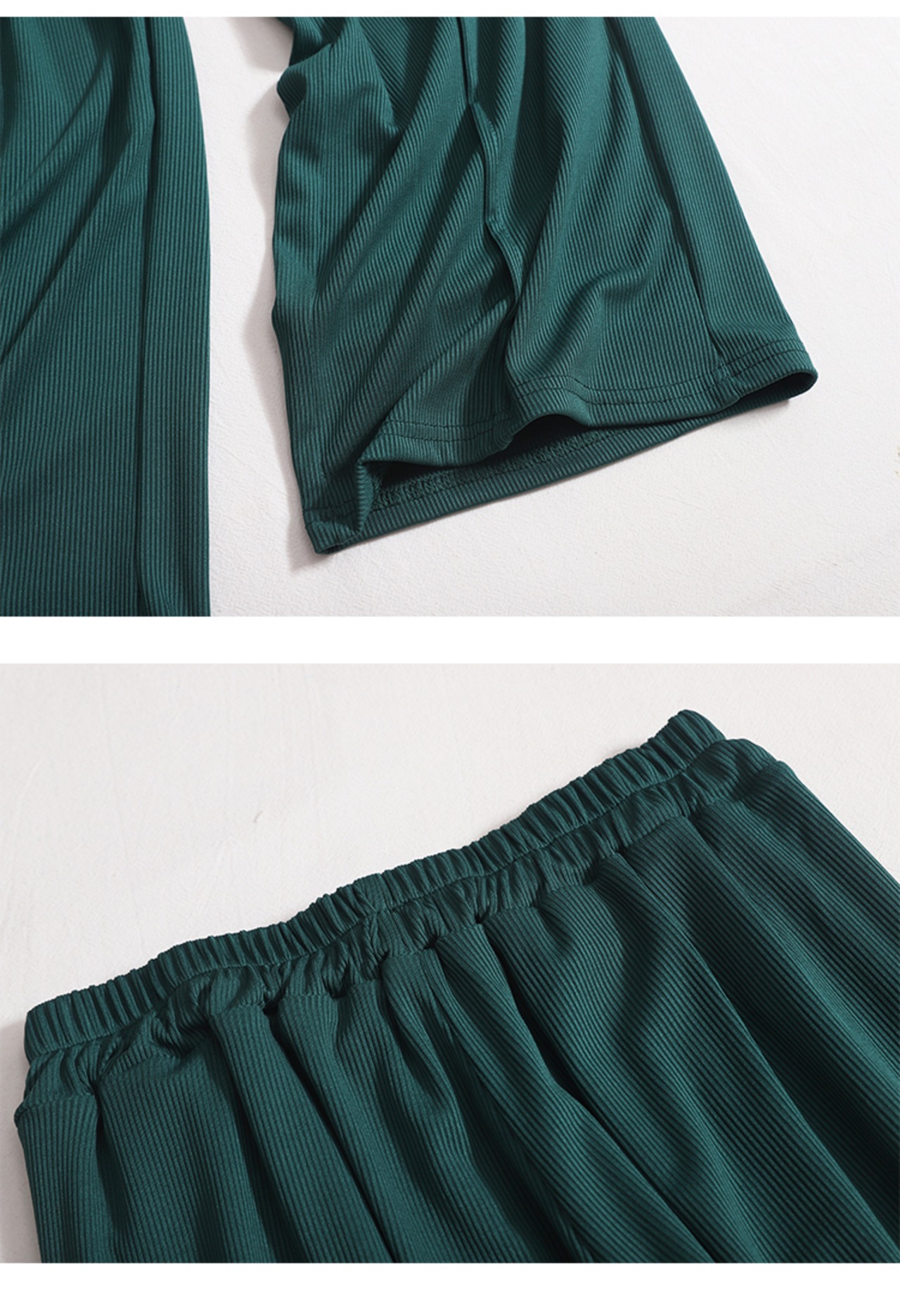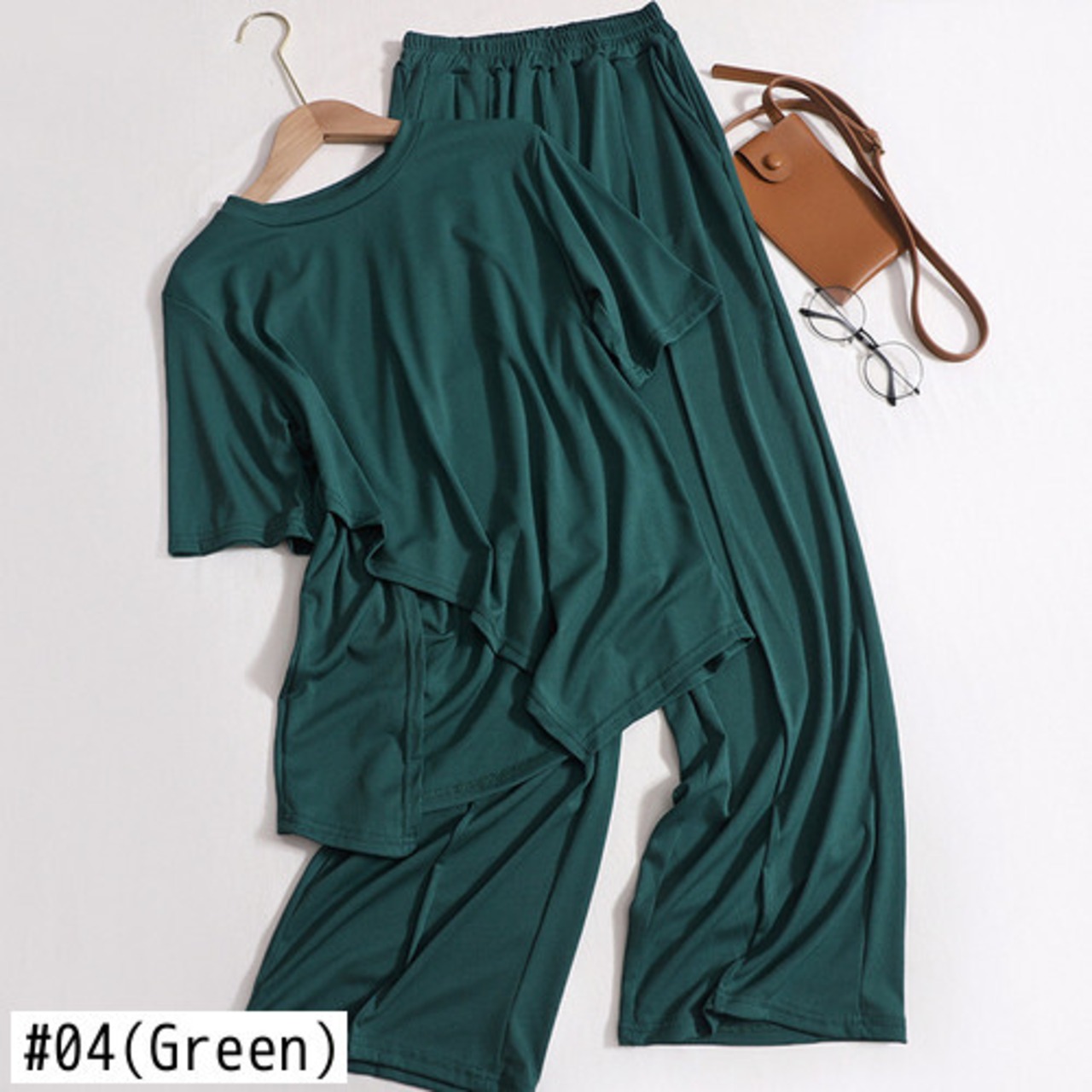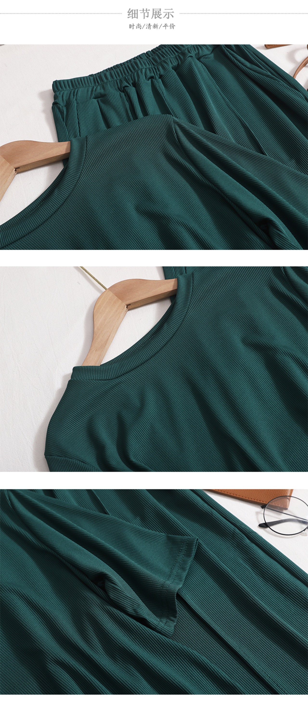 Nomikuma 因果セット夏スプリットソリッド半袖 O ネック T シャツ + ウエスト幅エレグロングパンツ 2 枚 ショート ハーフスリーブ サマー 夏物 Oネック ソリッドカラー