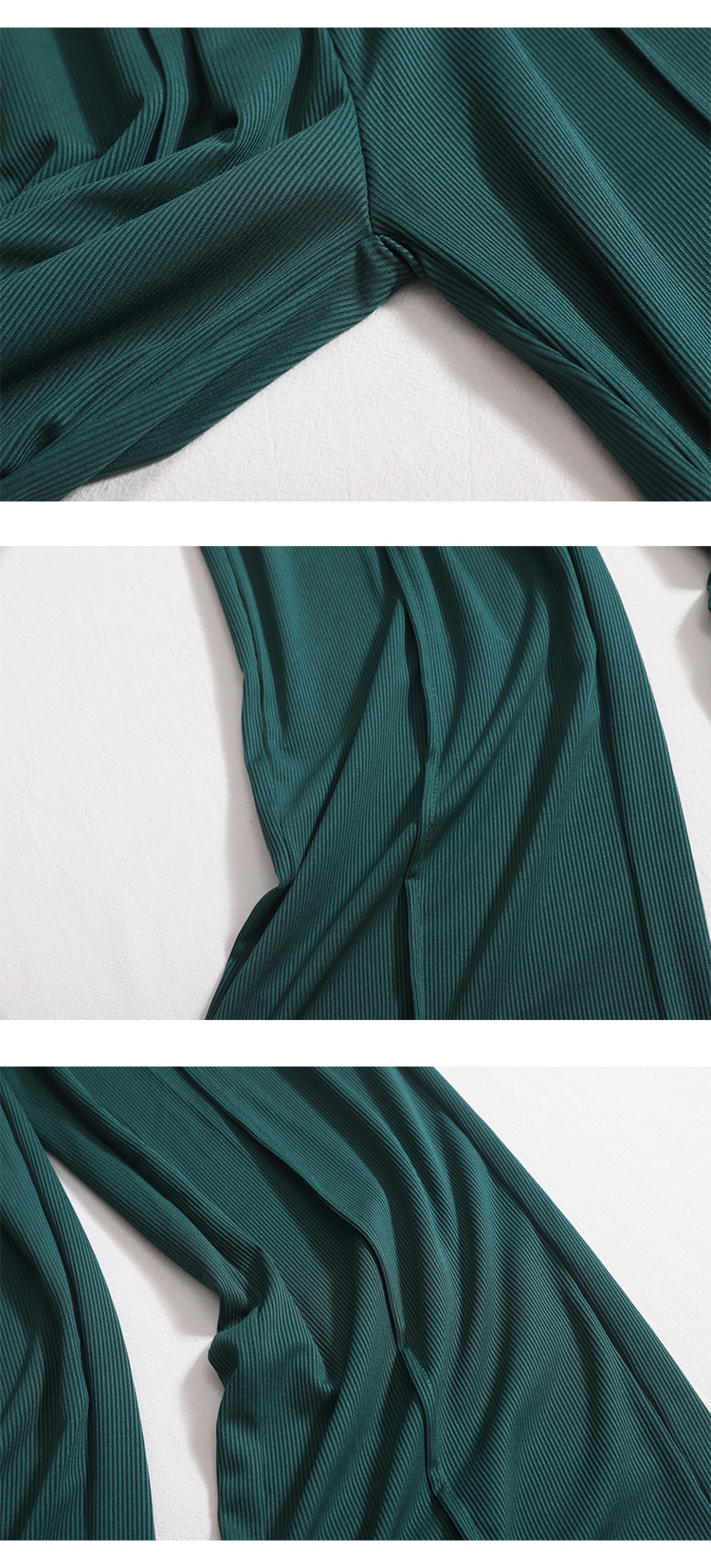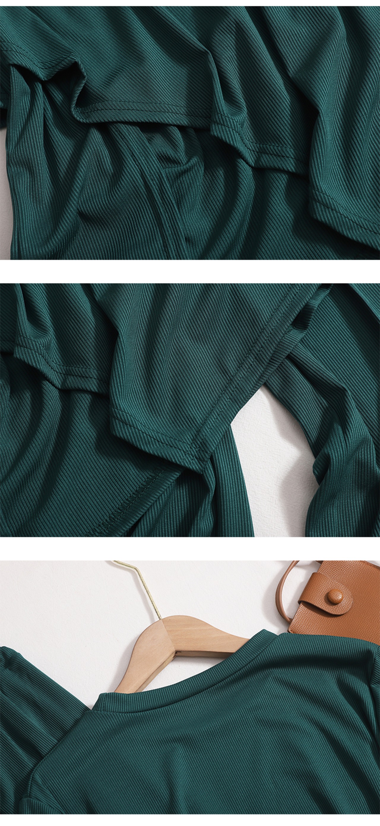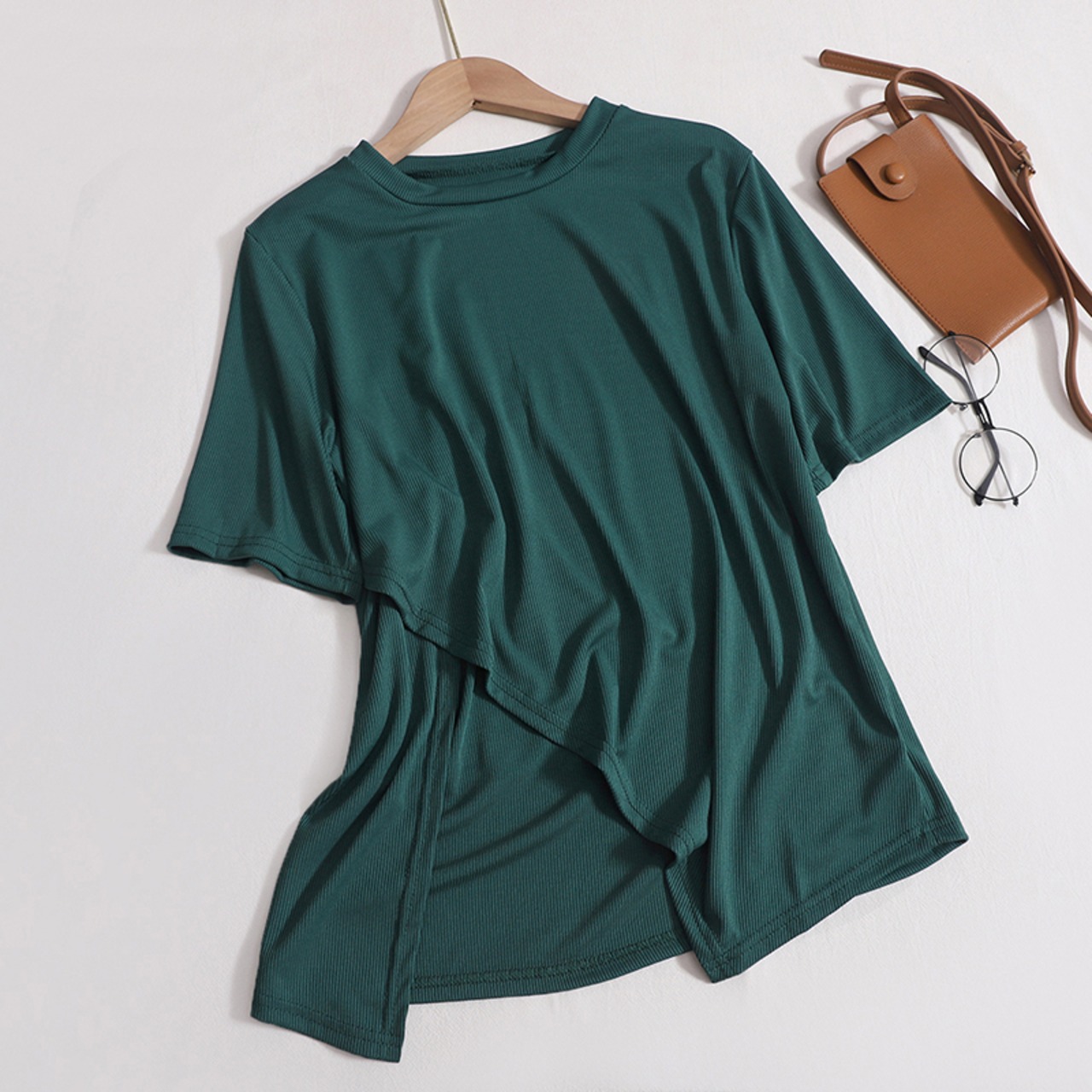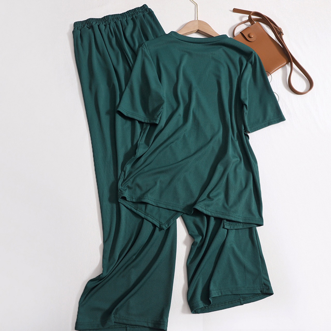 Nomikuma 因果セット夏スプリットソリッド半袖 O ネック T シャツ + ウエスト幅エレグロングパンツ 2 枚 ショート ハーフスリーブ サマー 夏物 Oネック ソリッドカラー