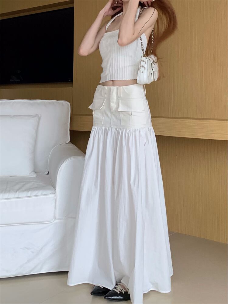 Nomikuma A ラインロングスカートセクシーパッチワークウエストミディスカートソリッドカラーボトムス s Aライン