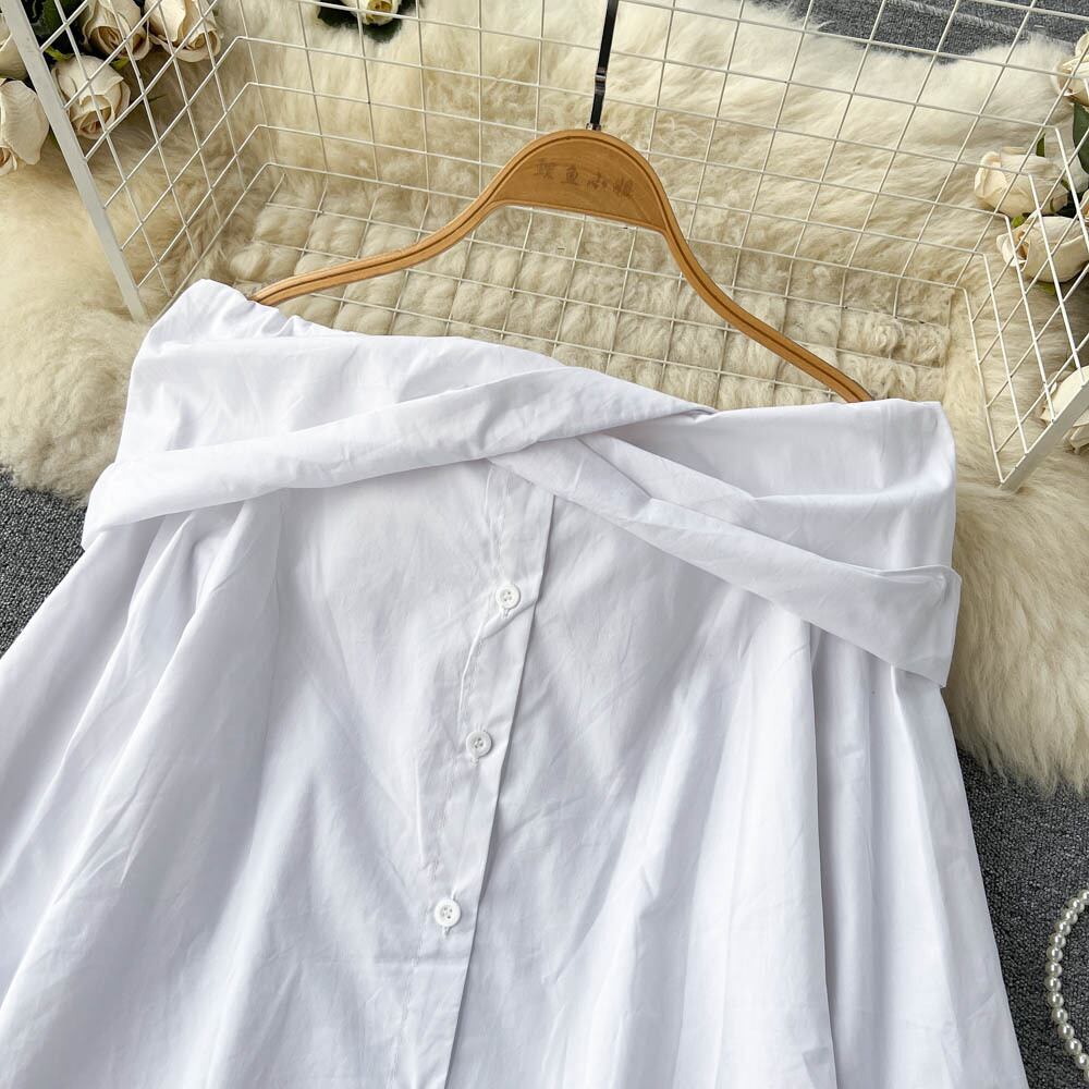 Nomikuma ツイストオフショルダーストラップレスブラウストップス長袖シングルブレストシャツ ロング