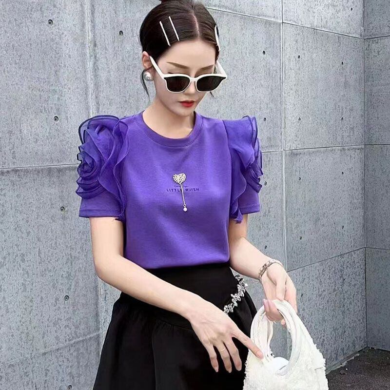 Nomikuma シック 3D フラワー半袖シャツ O ネック夏 Camisetas シックグラフィック T シャツ ショート ハーフスリーブ サマー 夏物 Oネック Tシャツ フラワーデザイン