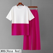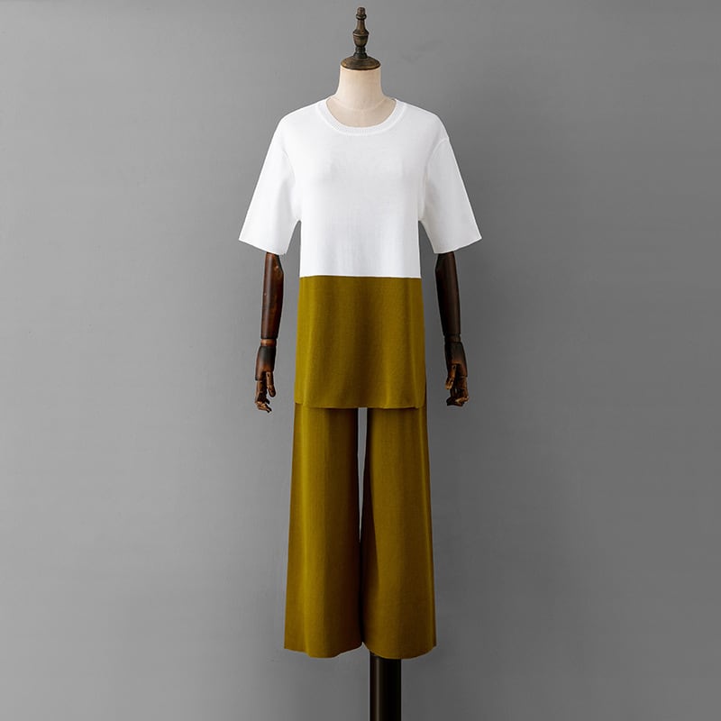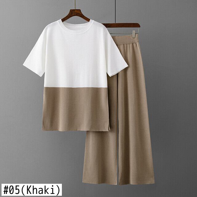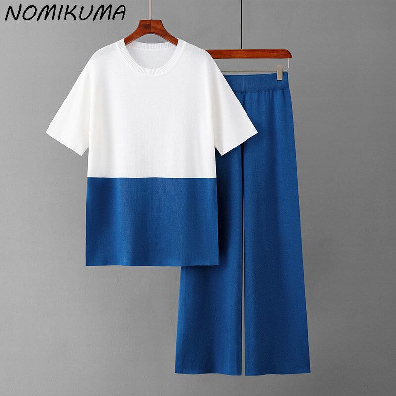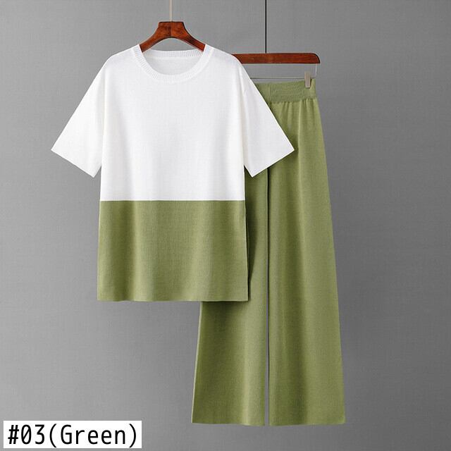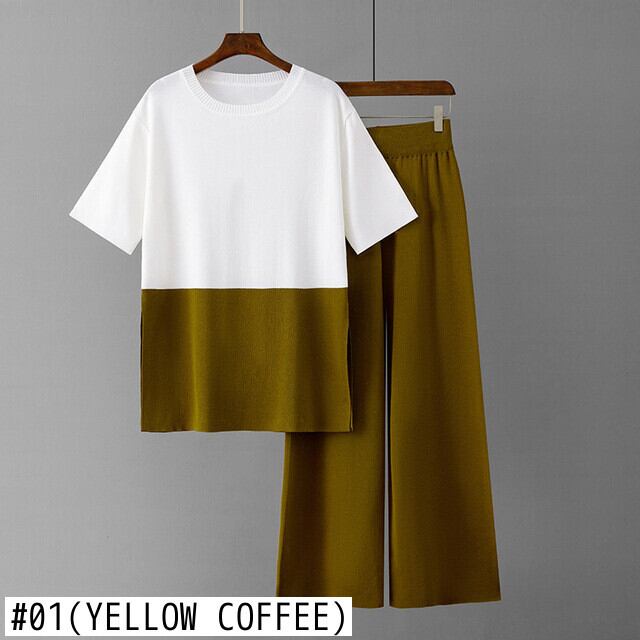 Nomikuma 因果セット夏因果コントラストカラー Tシャツトップス + ウエストワイドレッグロングパンツ 2 枚 サマー 夏物 ワイドパンツ