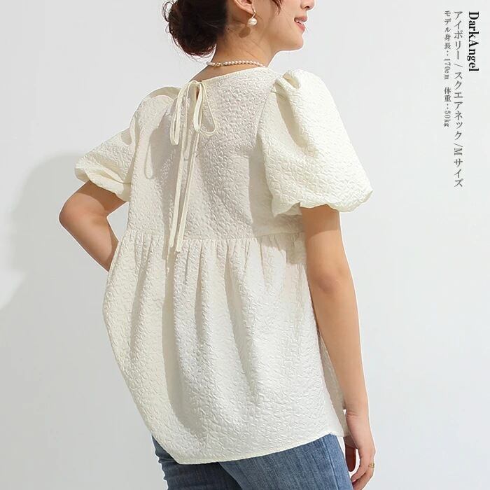 Nomikuma 春夏 スウィートウーマン ドールシャツ風 パフスリーブ レースアップ Oネック ブラウス トップス 大人ガーリー キュート カジュアル スプリング 春物 サマー 夏物