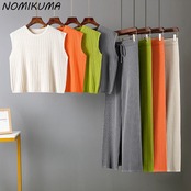 Nomikuma 2 枚衣装カジュアルノースリーブ O ネックプルオーバートップス + ウエストワイドレッグロングパンツセット Oネック ワイドパンツ