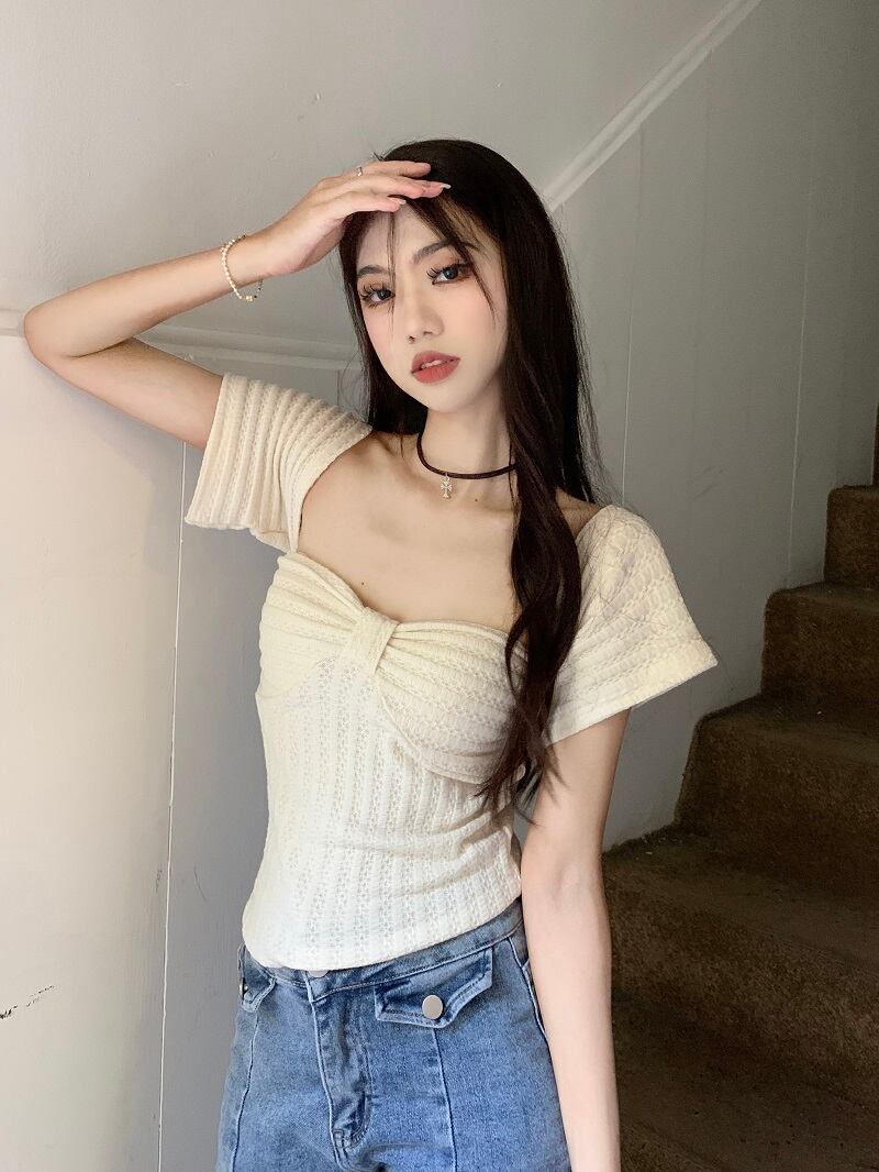 Nomikuma セクシースクエアカラー半袖トップス夏スリムクロップ Tシャツプルオーバーグラフィック Tシャツ ショート ハーフスリーブ サマー 夏物 スクウェア