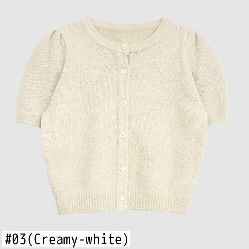 Nomikuma シック サマー スイート パフ スリーブ O ネック セーター コート シングルブレスト カジュアル ソリッド ニット カーディガン 大人ガーリー スウィート キュート 夏物 Oネック ソリッドカラー