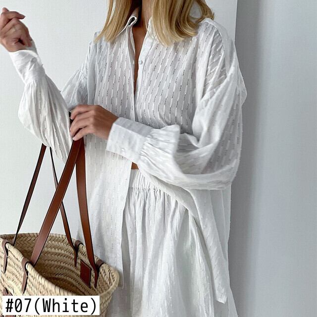 Nomikuma 夏ジャカード 2 枚セット パフスリーブ ターンダウンカラー ブラウス トップス + ウエスト ショーツ サマー 夏物 ブルマー