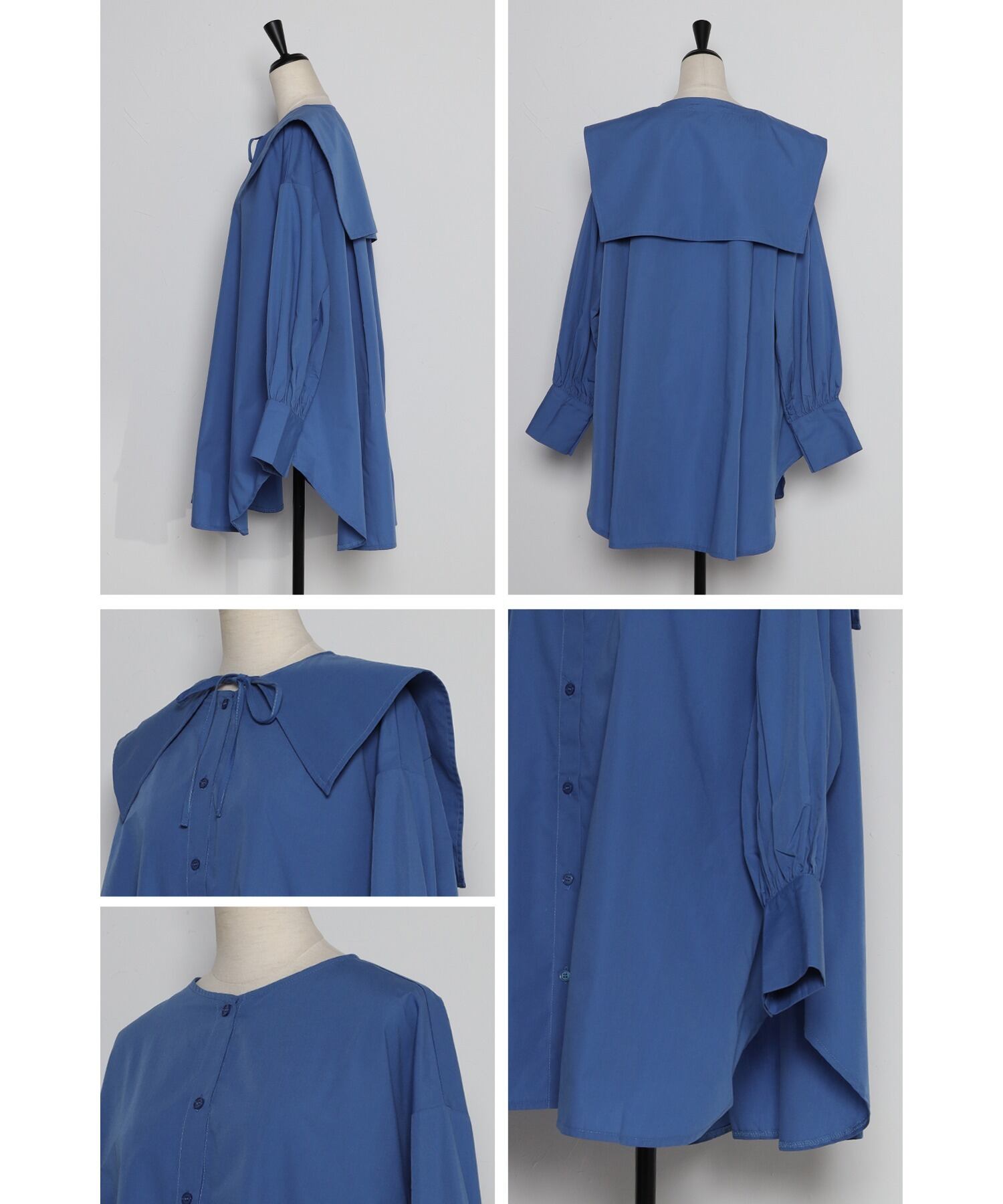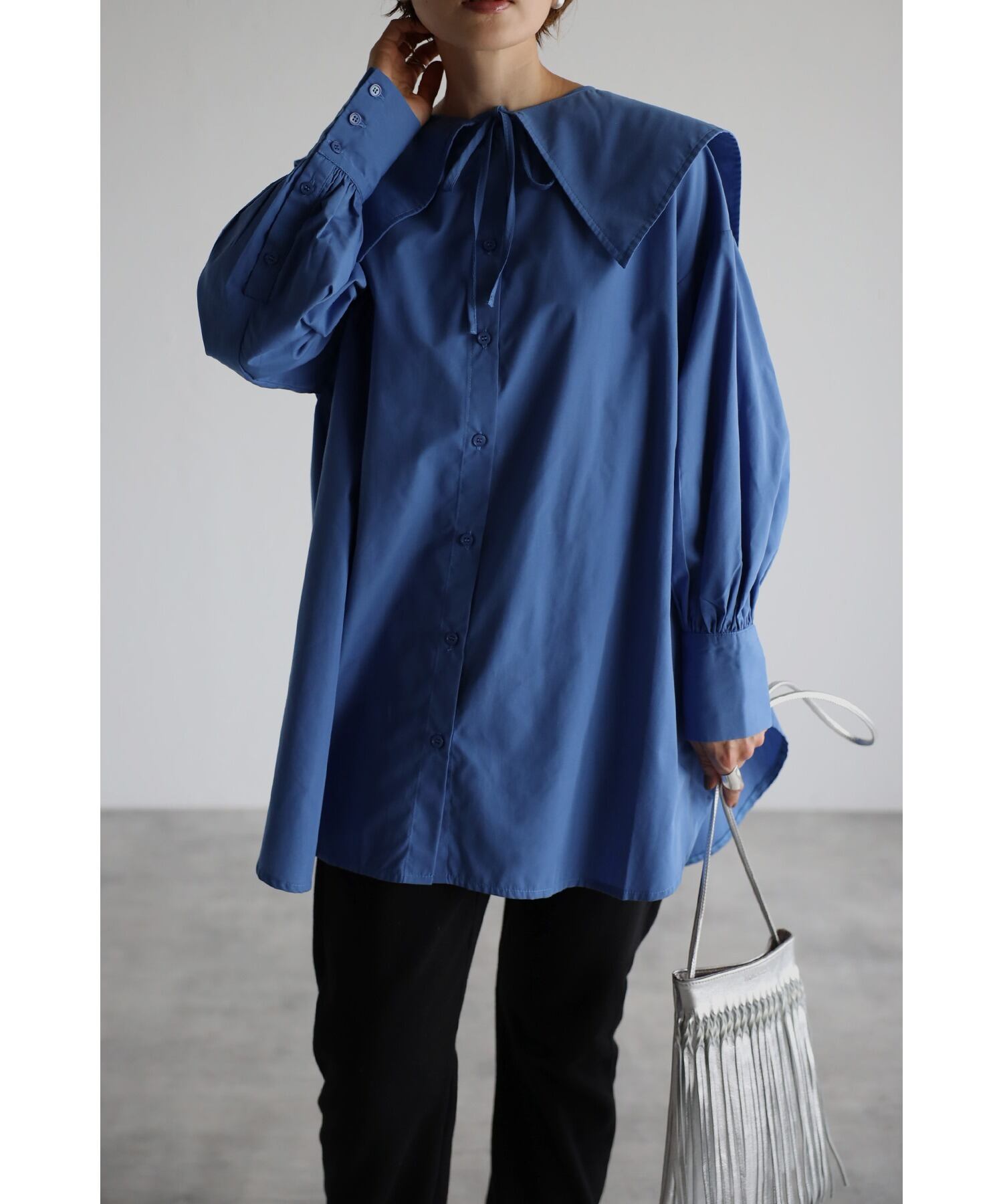 Nomikuma 長袖レースアップセーラー襟ブラウス因果ミディアムロングシャツ春デ スプリング 春物