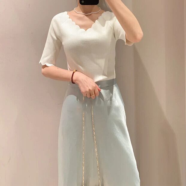 Nomikuma スリムニット半袖 V ネック Y2k トップ夏底グラフィック Tシャツシャツ ハーフスリーブ サマー 夏物 Vネック ソリッドカラー